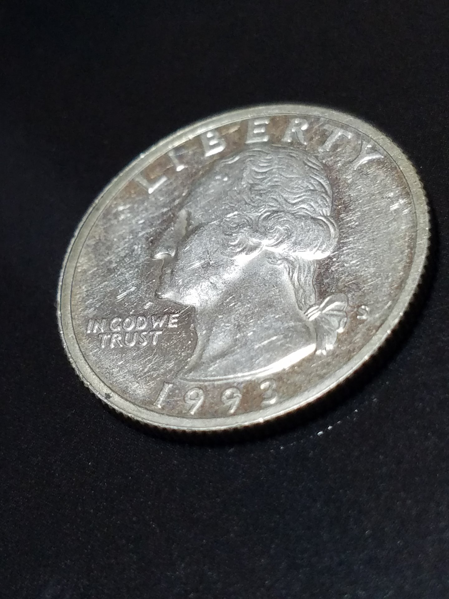 the rim or border on this 1993s quarter seems to be wider than most ive seen. and the edge of the reeding rises above the surface on the heads side and might just a hair also on the back and is this a silver quarter? i dont see the two tone on the reeding like non-silver quarters.