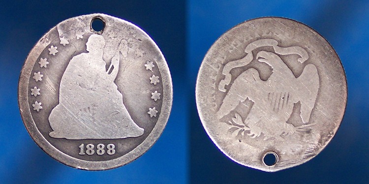 Nice IHC! But tell your friend to treat the verdigris or PVC before it corrodes the coin underneath. Lance.