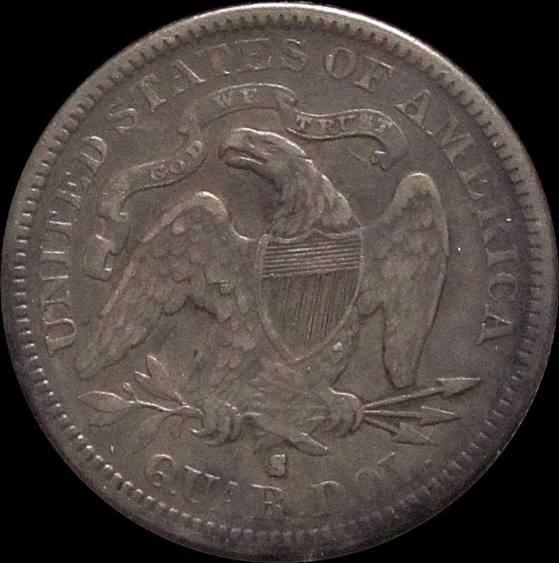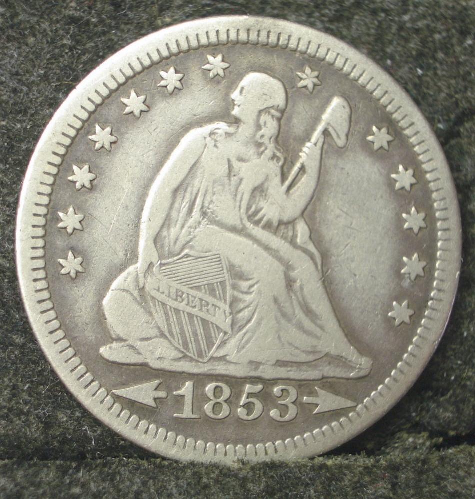 Love this thread! Not sure if I have a more circulated coin in my collection than this one. Seated Liberty Quarter... 1860 S. Mintage is only 56,000. Long story as to how I got it but it didn't cost me more than 3 bucks. Not too bad eh?