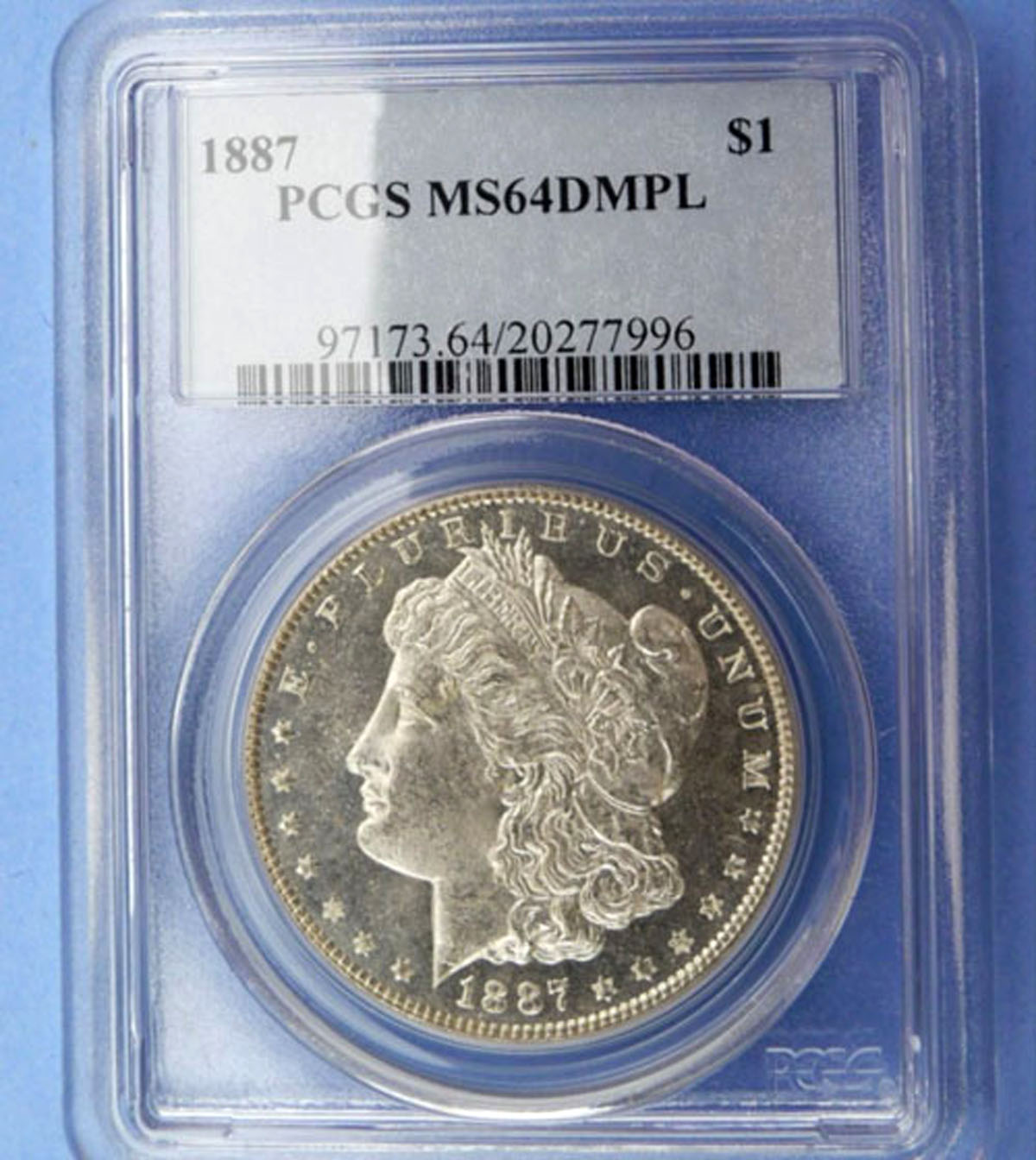 Not DMPL or DPL The reverse of this Morgan is SDUDMPL (super duper ultra delish mirror proof like). Unfortunately, the obverse fields have areas that are just not reflective so there would probably not be any PL or DMPL designation on the holder. Of course, it is in an old ANACS holder. I really like this coin.