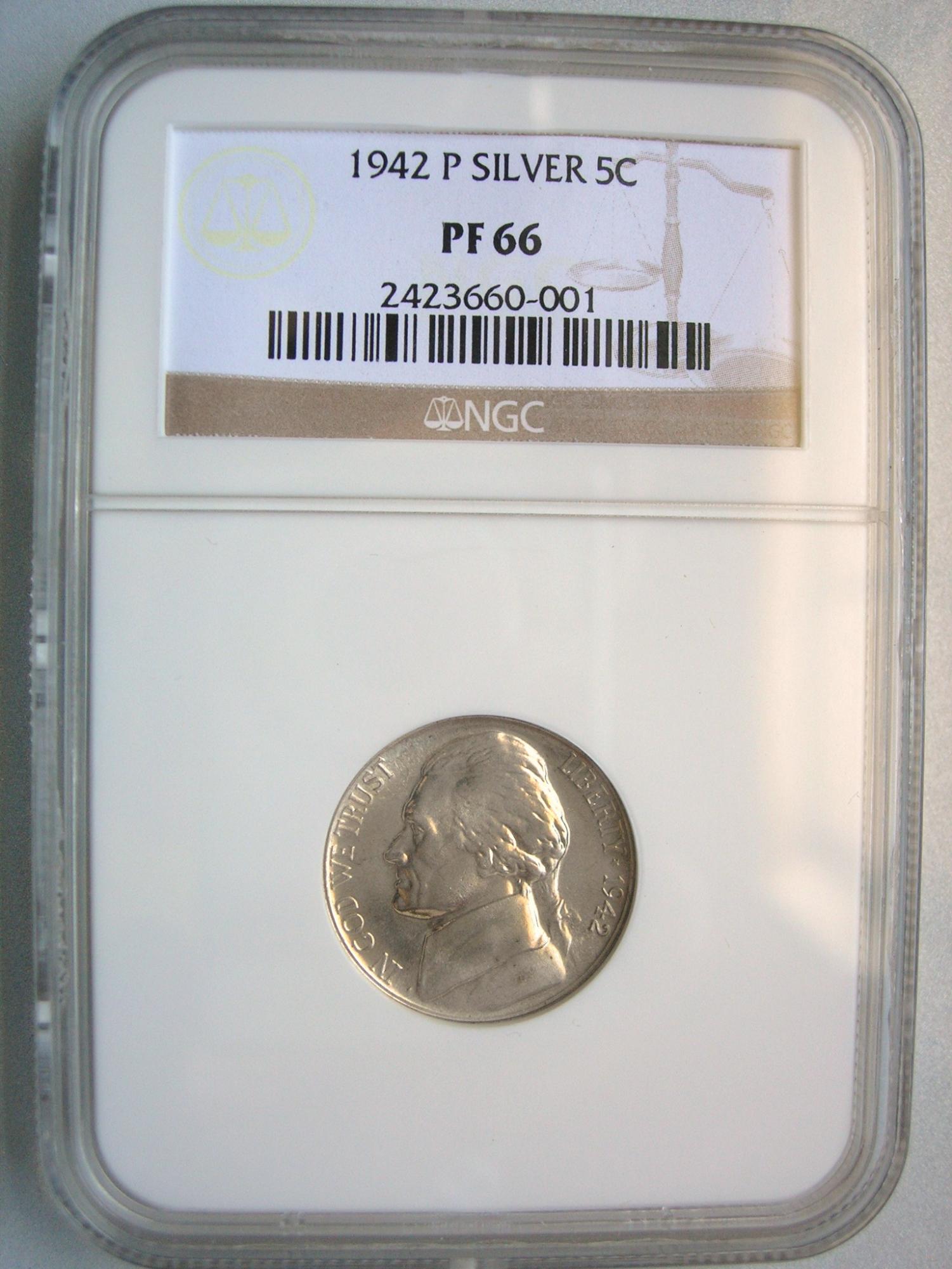 Not only a nice Grade & Strike for this 42-P but it's also an 42PR WDDR-003 Class ll +VI,distorted & Distended hub doubling,Adds $350. Premium to base Value to grade. Overall Rarity Very Rare PUP lg die gouge (dot ) on the back of Jefferson's collar below his hair.