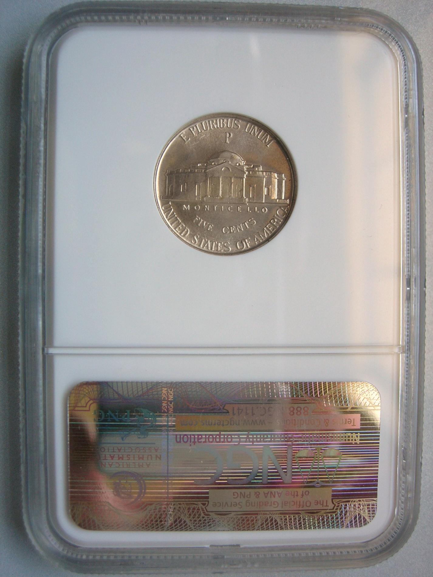 Cool I have 2 rolls of unc 43 P but most all 43 Jeffersons nickels exhibit some doubling of the Obv. due to a doubled master die. I have 3 complete collections of Jeffersons nickels including proof. I am now working on a registery set of proof Jeffersons. I am ranked 28 in my registry set. I also proud owner of a 1938 Schlag autographed poster board. I'm kind of a nickel nut...Jefferson are my first love to collect but also have a full set of buffalos , and alot of unc shield and Liberty nickels.....only wish I could boast of a 1913 V .....wishful thinking....