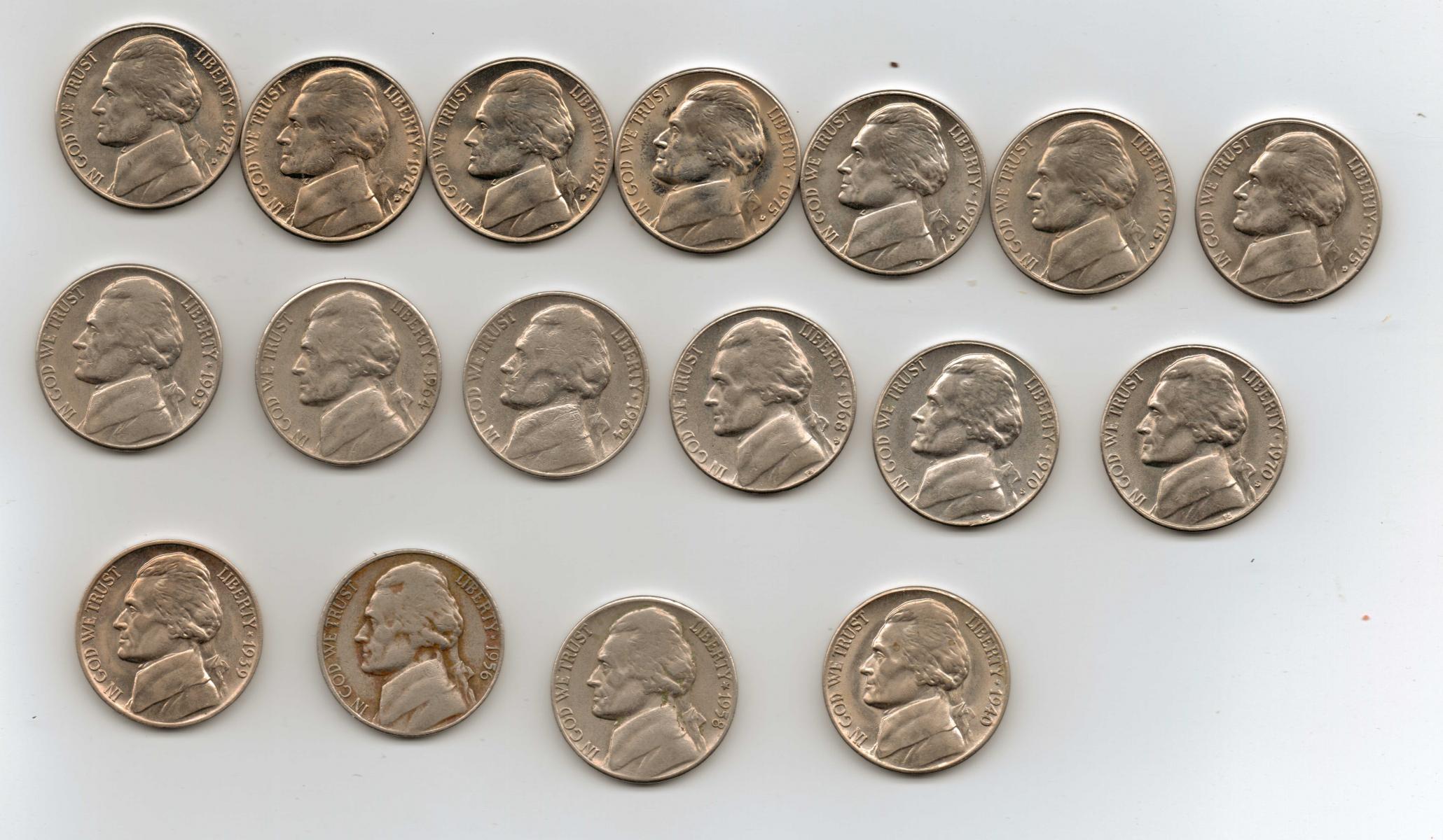 I found these in a roll at my work. when I cracked open the roll I thought they we just newer nickels until I looked closer. I might have even given some away as change. but once I noticed the dates I pulled them all out. the dates are random from 1939 to 1975.
