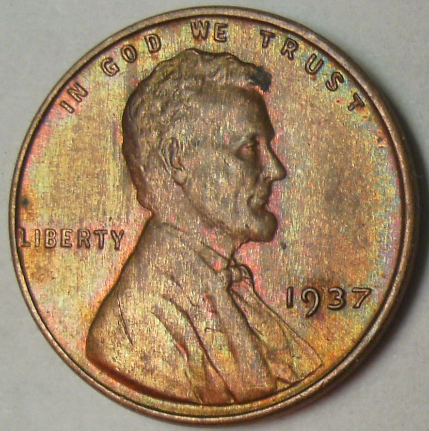 Hey, rlm and I both have a toned cent from 1937 with the woodgrain effect.