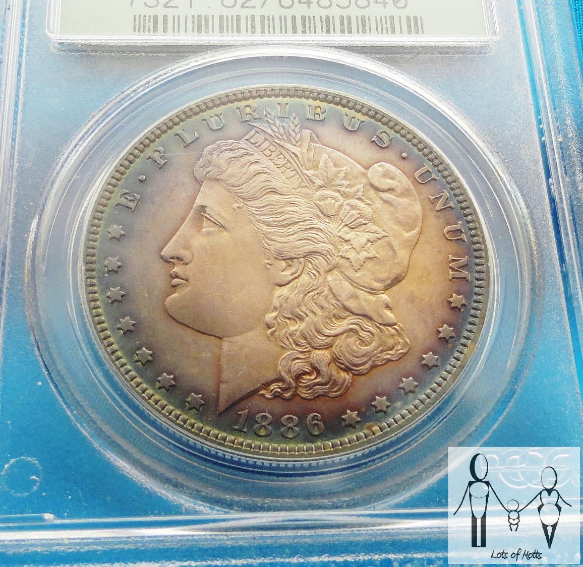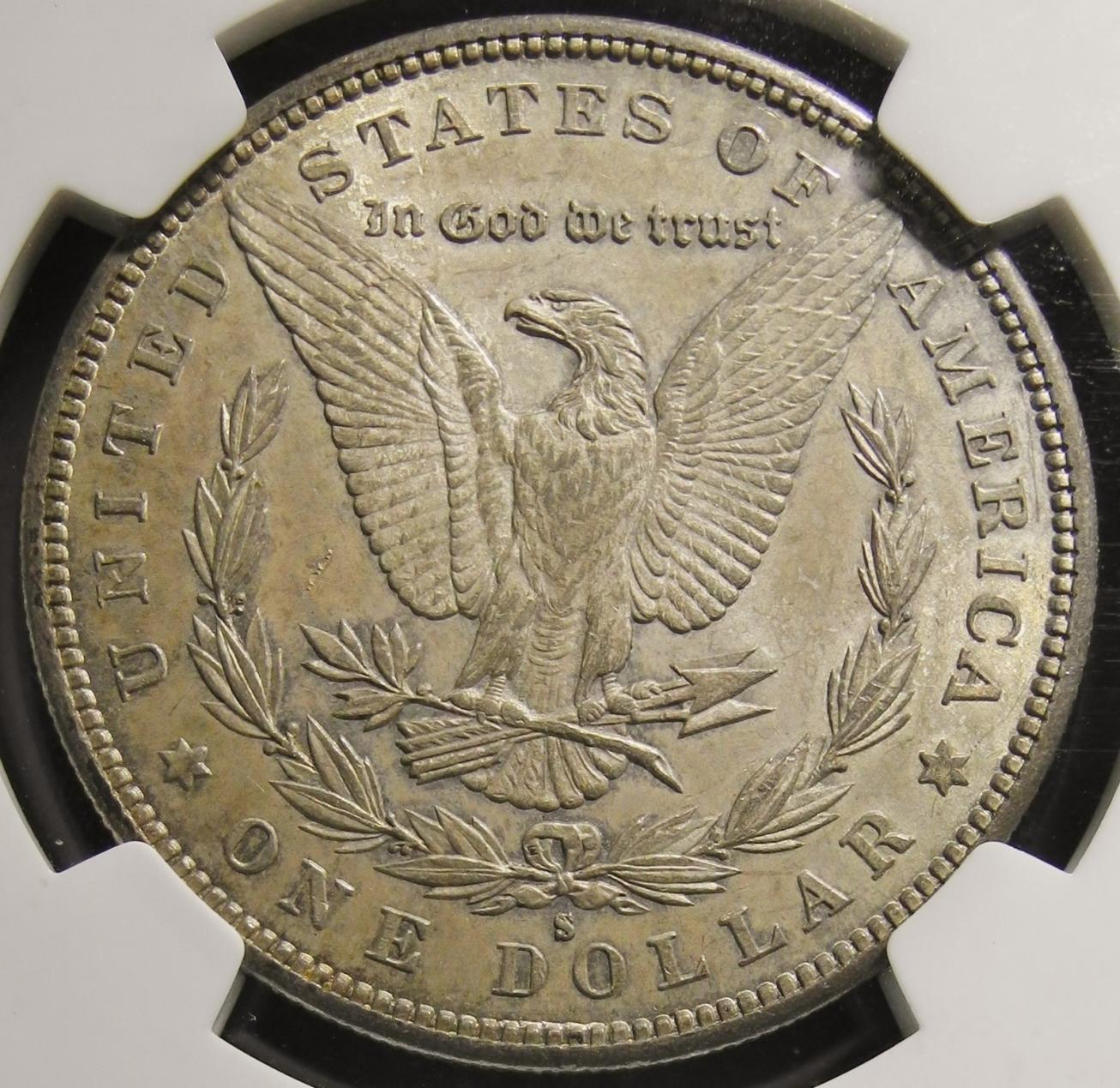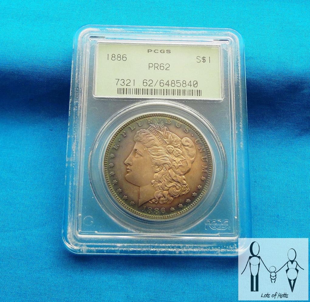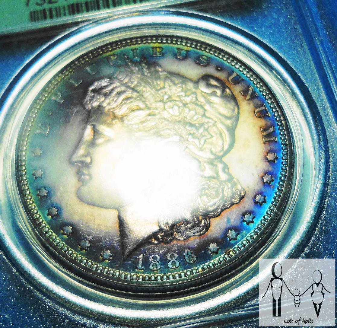 Latest grab at auction--very tough date in MS, like all of the later 80s S mint Morgans. With nice golden toning, even more difficult. Good pickup, as it was priced low for a coin with nice toning. Low pop in any MS grade for Morgans.