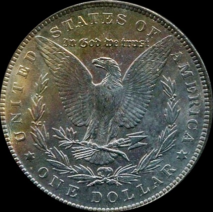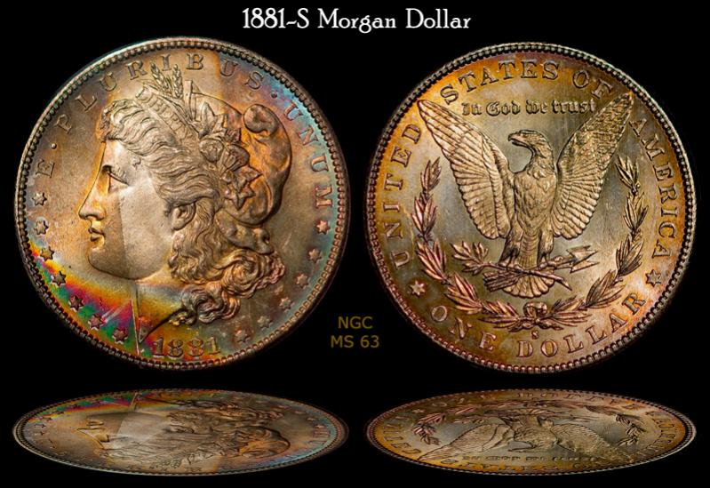 I bought this Morgan on approval a few days ago. I thought the color/toning was really pretty, but wanted to examine it in hand before I decided if this was a keeper. It does have a very unusual lighter stripe down the middle on the obverse. At first I thought it was end of roll toning, but the pattern isn't right. Now I wonder if a piece of paper was laying on the coin for a while? The left edge is sharp but the right edge is fuzzier and doesnt extend all the way down the coin (which I think reduces the chances this mark was from scotch tape). It's interesting that the colorful rainbow rim toning on the obverse bottom left worked its way through the left edge of the stripe -- so I know the rainbow rim the toning took place after what ever obstruction that was there was removed. In any case, I thought this coin was pretty and unusual. I think this would have had a shot at a higher grade (just look how clean the cheek is) but was downgraded (perhaps?) for the stripe? I think the coin itself is a very solid MS64 and might have even had a shot at an MS65. So how do you all vote? Do you like or not like?