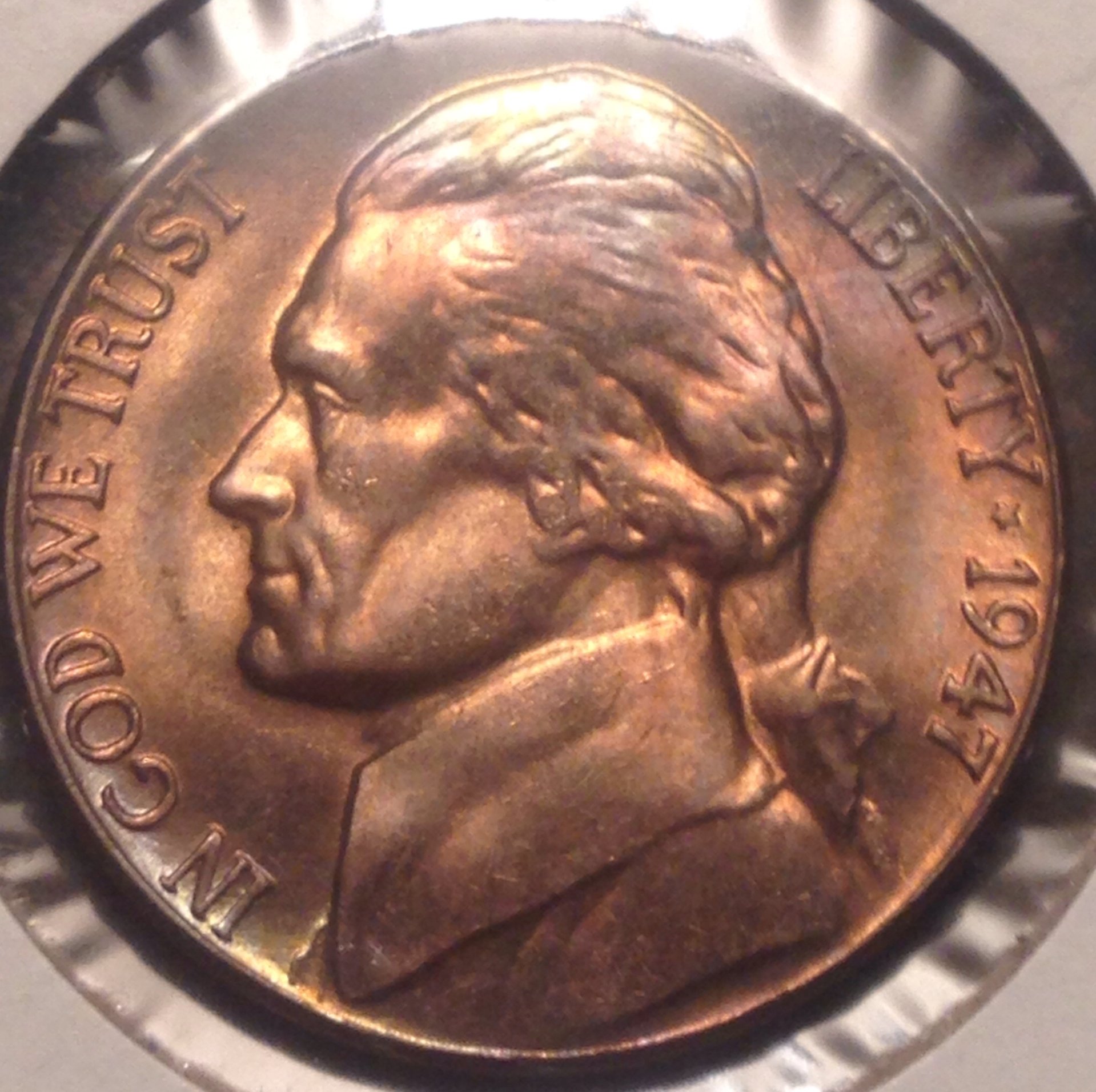 a CT member cent collector found a gorgeous green toned cent in a set. gorgeous green too. I once saw the most beautiful purple proof Jefferson nickel at a coin show in Vegas. I said how much and he said $500. I laughed and said to much for me later. never seen 1 purple proof since then. it might be a new trend in toned coin hunters ? I might take a stab at it in future.