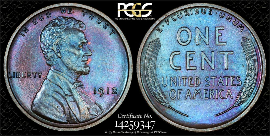 Just picked up this 1912 Matte Proof Lincoln ... PCGS PR65 BN I'm sure most of you know the deal with PCGS's TrueView photos, this is the max color angle. These BN Matte Proofs really change color as you tweak the lighting and viewing angles.