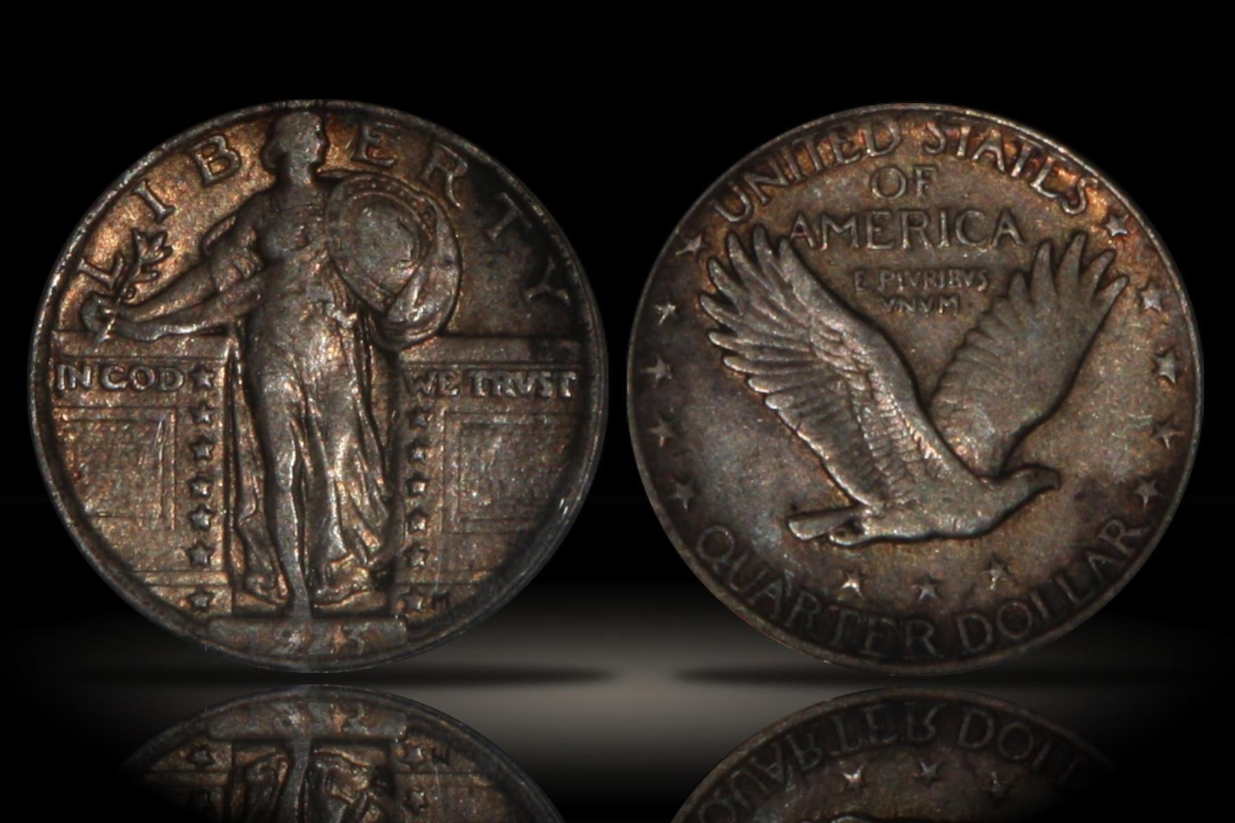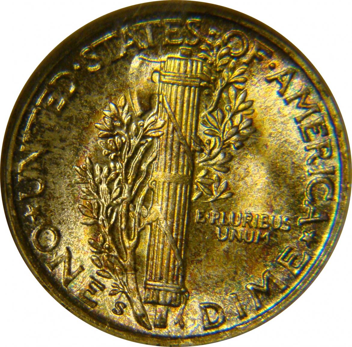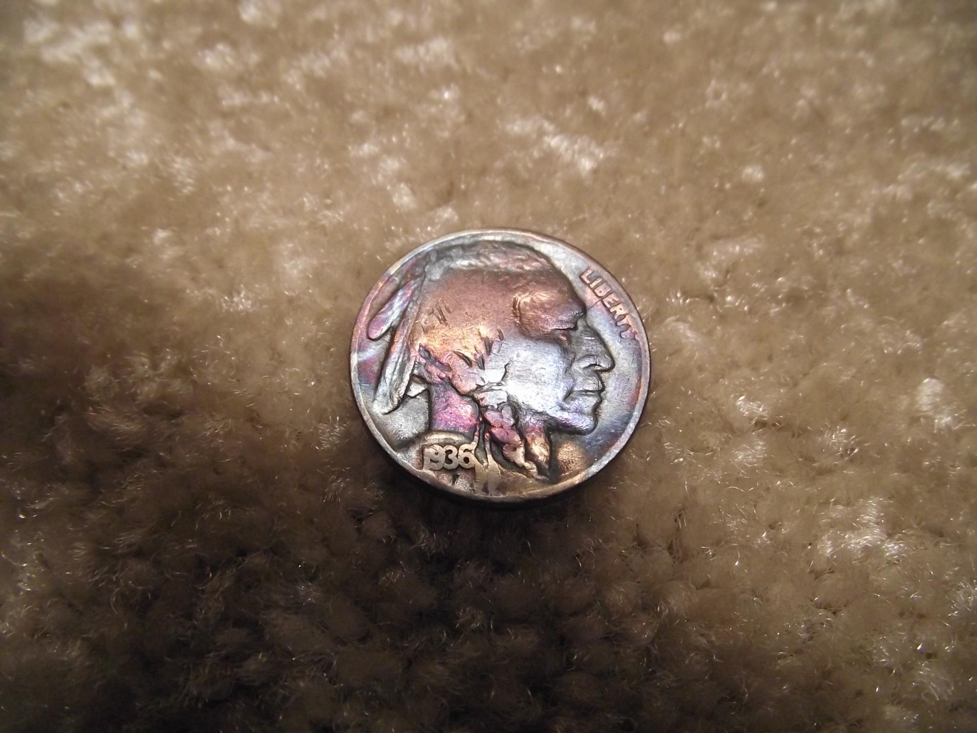 a couple of new toned ones 1938 D Buffalo with nice red toning. 1945 S Merc ANACS MS65 reverse toning.