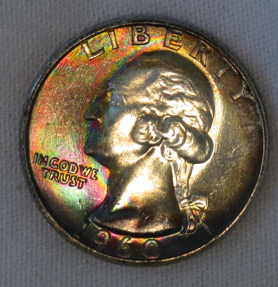 Just picked up another toned Morgan for my extensive collection of Morgan toners. This one has the color pattern I like a lot--Gold, going to rainbow. The reverse also has some nice toning. Had it not had some dark black on the obverse, it probably would have gotten the star. NGC won't star a coin with black in the toning pattern, normally.
