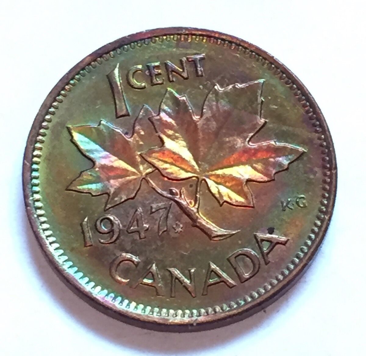 Beautiful Canadian cent. Great color and looks like on the hanging 7 variety 1947 cent ??? If not a variety still a nice 1947 Canadian cent .