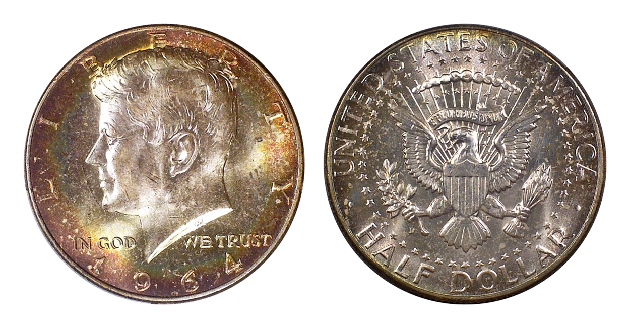 I'm sure this is AT but it's a cool color pattern. I have several AT coins all of which are commons both BU and Proofs. I know the majority are appalled by them as being damaged or tampered with, but the ones I got are viewed by me as art work with little or no numismatic value. They also serve as examples to learn from. That being said if you ever get tired of that '64 well I know a guy that might know a guy who would be interested.