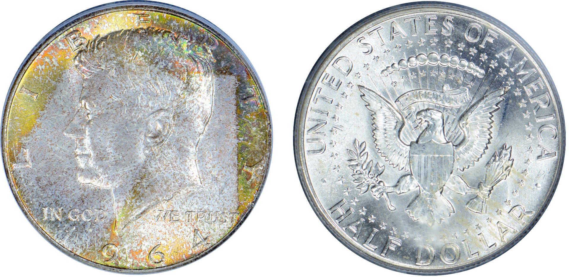 Picked this Kennedy up recently. Neato angular toning on the obverse, blast white on the reverse.