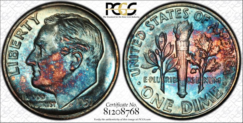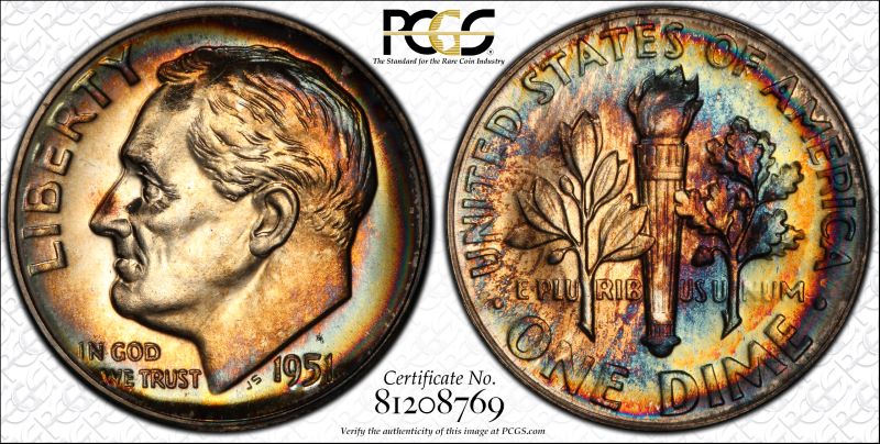 The blue 1951 graded PR66 and the rainbow 1951 graded PR67. I'm debating which one to keep for me set and which one to sell. What would you do?