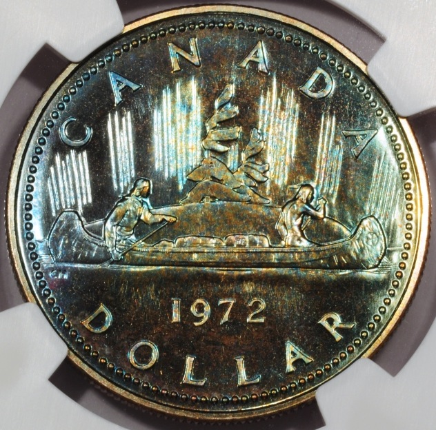 My latest grab, if you're gonna get a boring old common date may as well find a cool one. Saw this toning and had to have it. NGC ms65 1885: