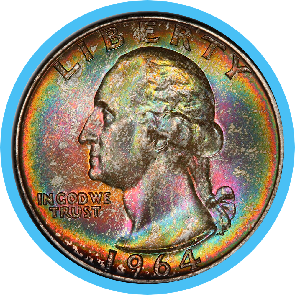 A naturally toned SMS (Special Mint Set) And a naturally toned proof... compared to an artificially toned proof. At least, I assume it is AT, since I bought 25 of these proofs with assorted toning that represented 25 consecutive years. They cost 11 cents each.