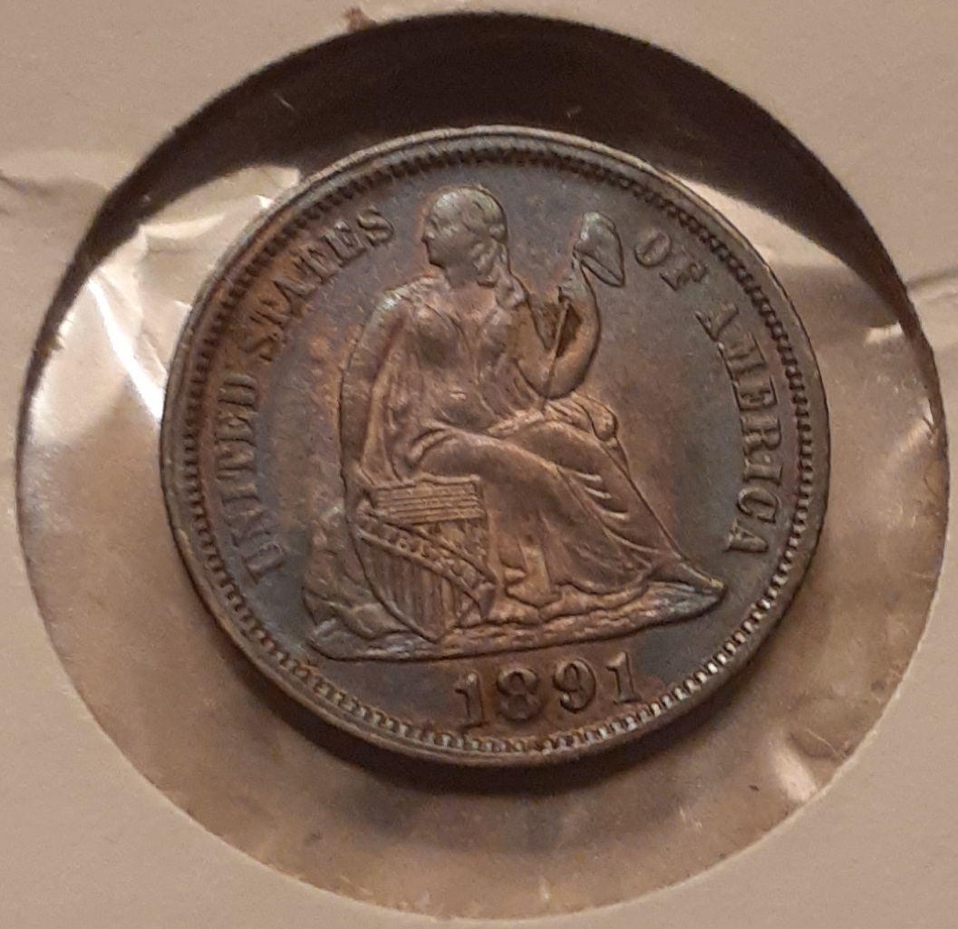 I found this 1967 SMS Lincoln Cent in a set where the end (next to the cent slot) had come open. This coin was "trapped" outside its resting place, allowing a more than normal amount of air to enter the set and give it this interesting color.