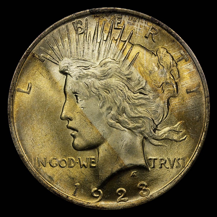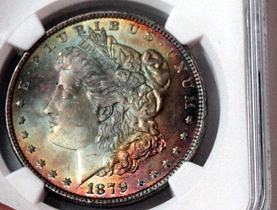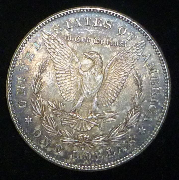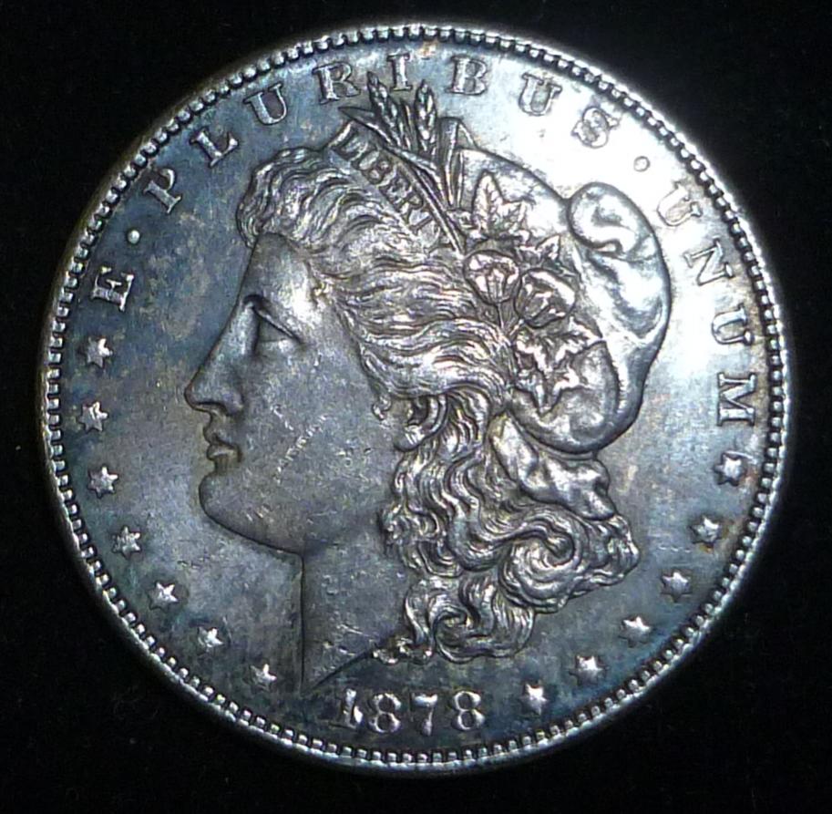 Honestly my favorite toning would be either rainbow, or a uniform color. Any color, as long as it's uniform. Spotty, uneven toning looks strange to me. o_o Here's an 1878 Morgan. The toning is a bit spotty but not so much as to ruin its beauty, I think it's pretty anyway. :3 And now my most prized coin out of my entire collection, a 1759 Spanish 8 real. IMO it's toning is perfect, the only way it could be better is if it were rainbow. The obverse is a uniform light brown, but the reverse has some purple and yellow hints to it if you tilt it back and forth. Unfortunately you can't see those too well in the pictures...
