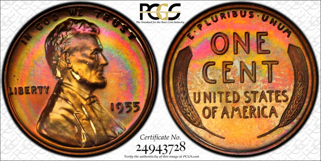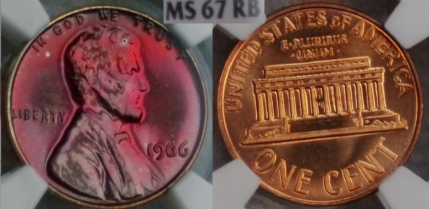 Posted this in the "Let's See Your Newest Acquisitions" thread back in March... PCGS called it 66RB. (Pop: 4/3) This coin seriously covers just about every color in the spectrum. Sorry if images are distorted. $20 TrueView also bought me ridiculously high-quality images, but I can't figure out how to resize 'em to fit the CoinTalk file size requirement. Here's a link to the "max size" image: http://images.pcgs.com/TrueView/24943728_Max.jpg -Brian