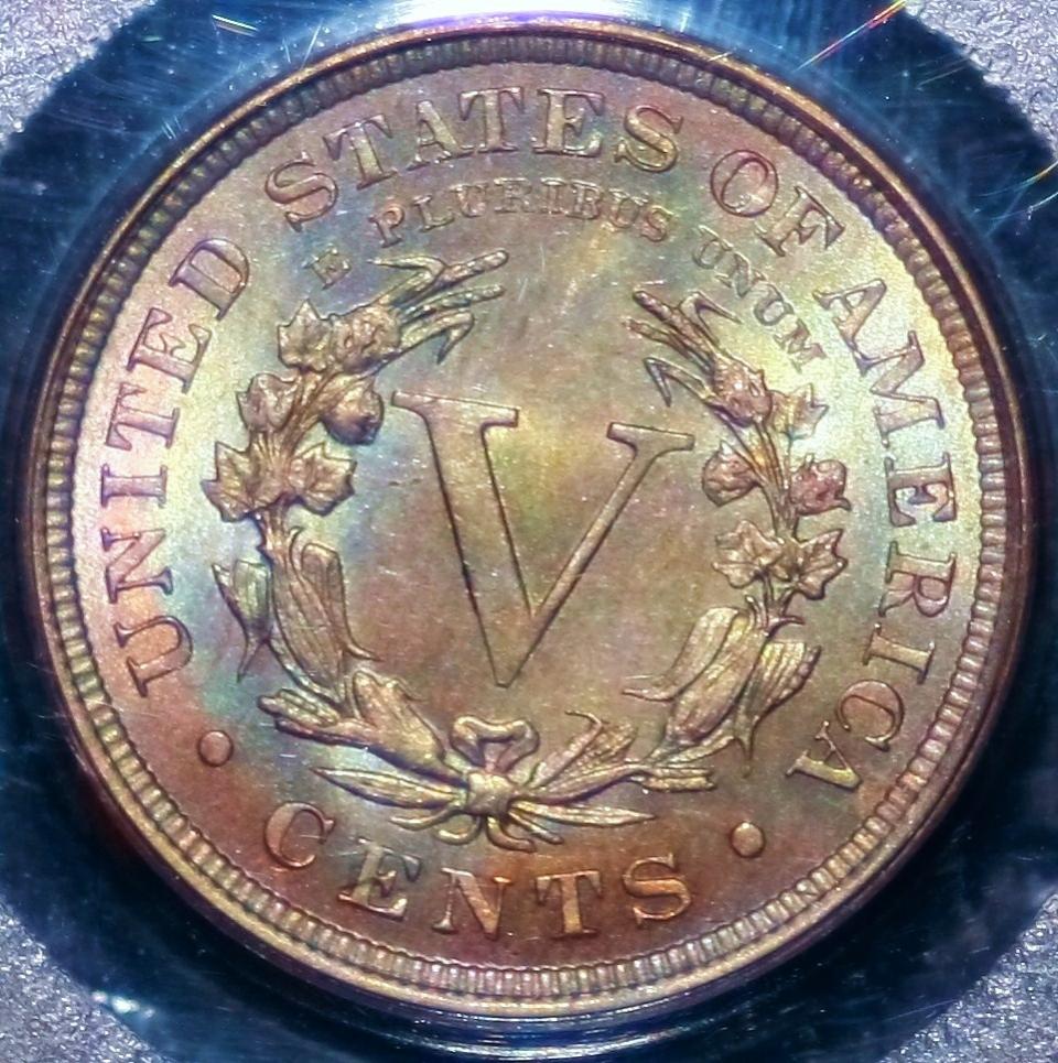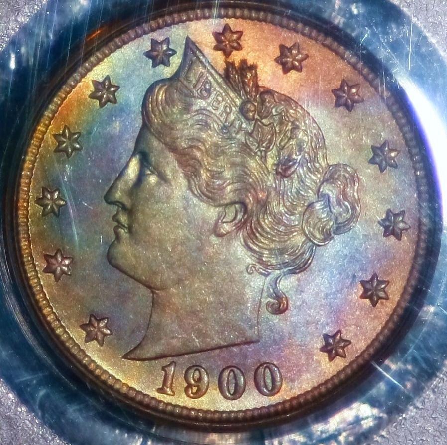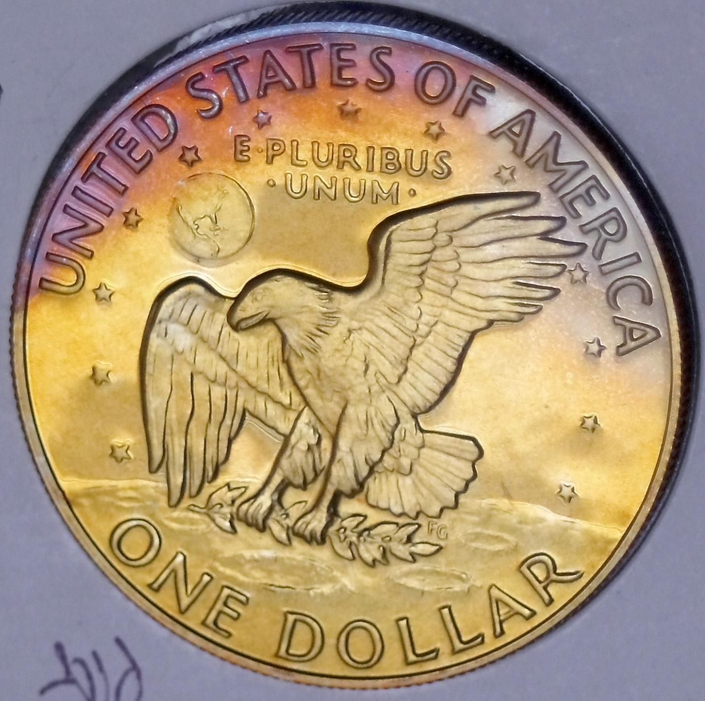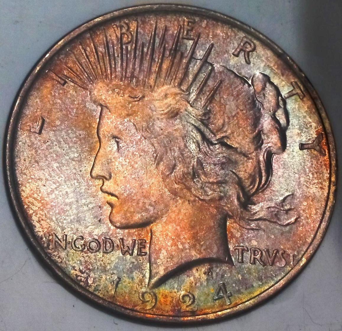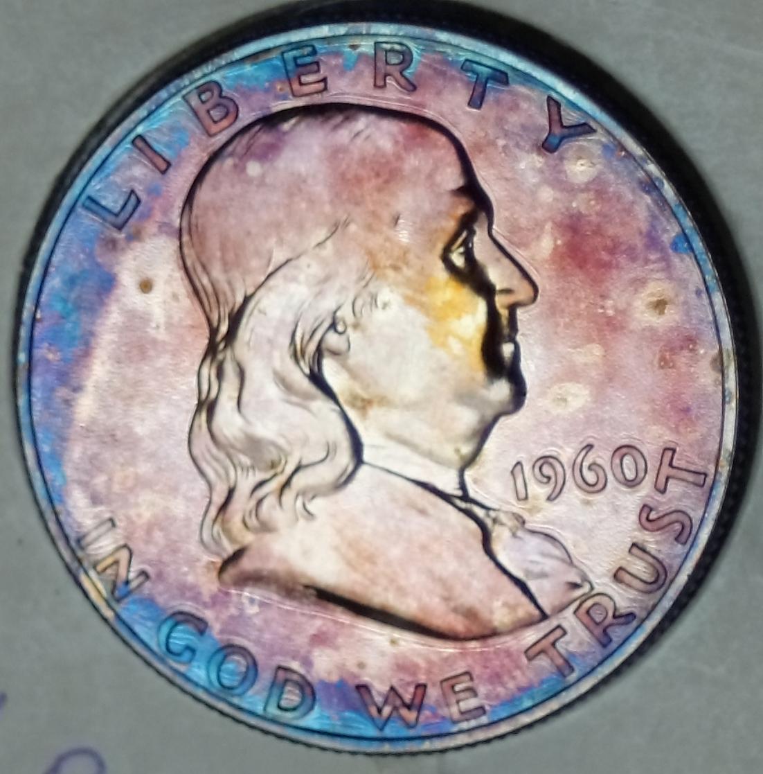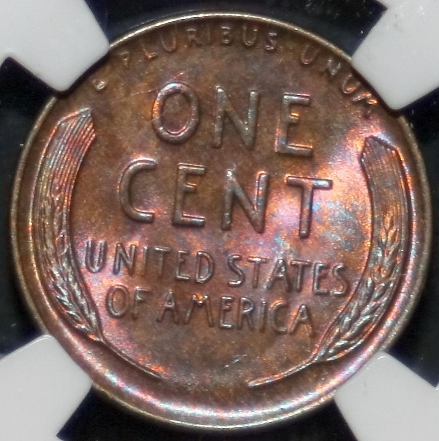 NKorea, that makes no sense to me. 1 - Wouldn't a dip remove anything acetone would remove, and then some ? Why even bother with acetone bath. 2 - If dipping does impart toning, wouldn't the millions of blast white morgans out there be black by now ? Anyway, the '58 quarter in question has had neither a bath or a dip or anything else.... It is very lusterful, which made it very hard to image,,, the toning pattern reminds me of the toning I have seen on a couple of cents I have: