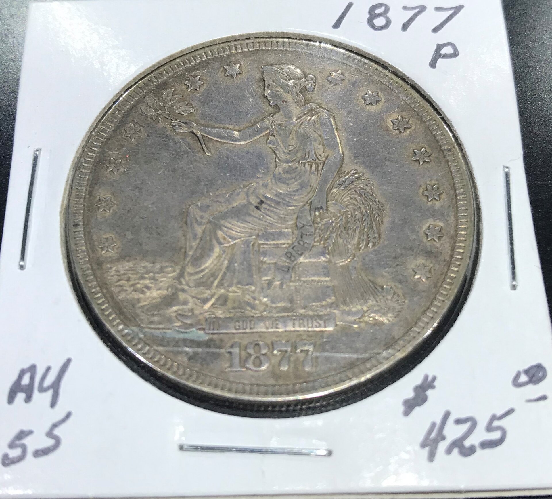 Looking at all these posts, I think the dealer at a LCS over graded this at AU55. The motto on the reverse is illegible. It was one of the first $Trade1877FrontIMG_8471.jpg $Trade1877BackIMG_8472 (2).jpg coins I bought in over 40 years. I think it is probably only a VF-30 if I am lucky. The reverse appears worse than the obverse.