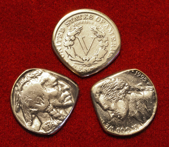 Seems to work out okay for Brian May of Queen. He uses sixpence coins as picks-- not carved, just as-found. I saw Queen + Adam Lambert in Dallas last year. Best seats ever! No zoom required. I felt like a concert photographer . I can confirm that he does indeed use coins for picks. He keeps extras in a little pocket on his guitar strap.