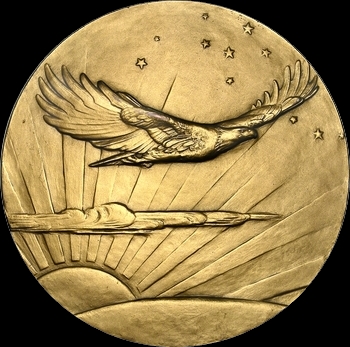 Laura Gardin Fraser's eagle on the Lindbergh Congressional medal has always fascinated me. That stately lone eagle, wings outstretched, heading eastward...... and the setting sun, so much like the Oregon Trail commemorative sunset........