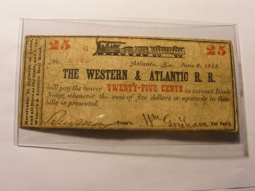 1862 Western and Atlantic RR voucher (25 cents)