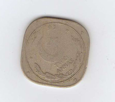 I thought this would be interesting since I know the weird shaped coins always jump out at me. Here are a Ceylon 5 and 10 Cents, a Pakistani 2 Anna and a Netherlands 5 cents, all with weird shapes. Let's see some others!