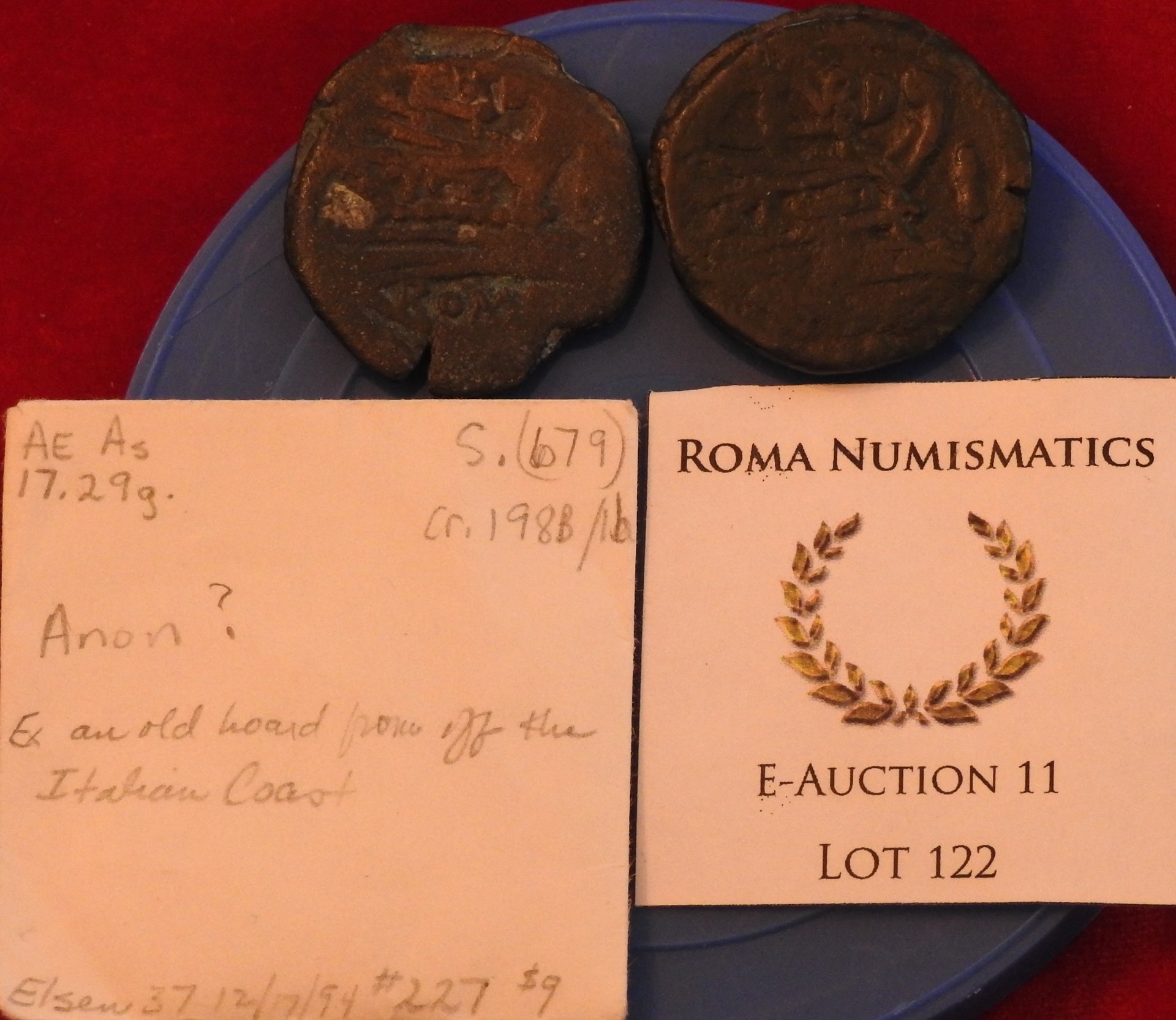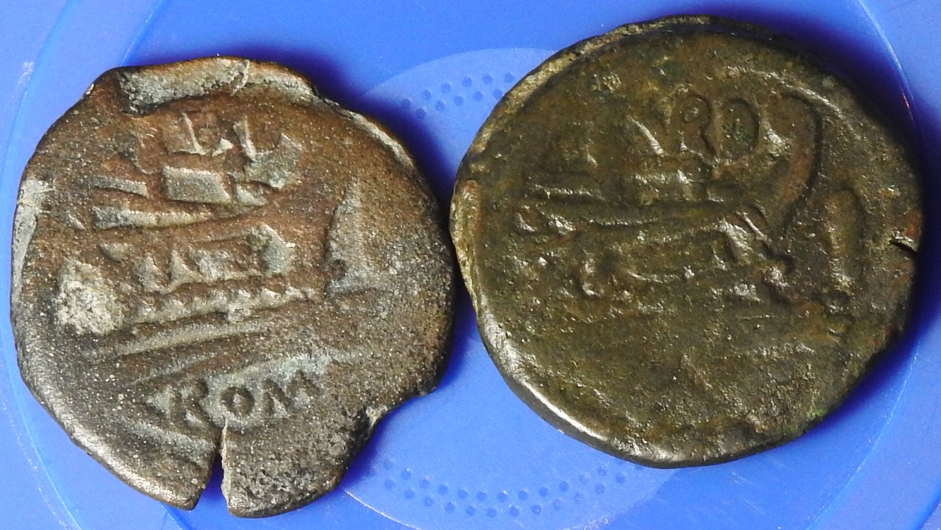 These are "real" TVRD coins. C. Papirius Turdus AE As Roman Republic As, struck bronze, 169 – 158 BC, Rome Obv - Laureate head of Janus, I above Rev - Prow right, TVRD ligate above, I before C. Papirius Turdus Æ As, 24.84g, 31mm, 12h. Good Fine. Crawford 193/1. BMCRR – Rome 796 – 798 Syd – 366 Bab – Papiria 1 RBW - 826 Per Grueber: The Turdi were a branch of the Papiria Gens. Livy mentions a C. Papirius Turdus, who was Tribune of the Plebs in 178 BC. The coin may have been minted by his son (and thus the name attribution). This moneyer produced bronze coins Sextans to As, but no silver or gold coins. Both coins have good provenances. The left coin is ex RBW collection and Elsen 37 in 1994. The right coin is from the Andrew McCabe Collection.