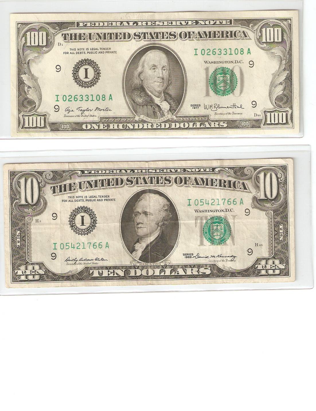 So I work at a bank and sometimes I come across a lot of different paper money and coins, so I thought I would post it here to share. Has your bank teller gave you some good coins or paper currency lately? If so post it I would love to see it! Here's some of mine: 1964 Quarter got a few days ago Customer used coin machine and kept trying to put it back in. (I heard silver clinging so ran over and told her I would take it at my counter ) 1977 hundred and 1969 ten dollar bill today In a customers deposit 1925 Stone Mountain got a few months ago Customer came in with this and 3 64 Kennedy halves and wanted 2 dollars for it!!!!!!