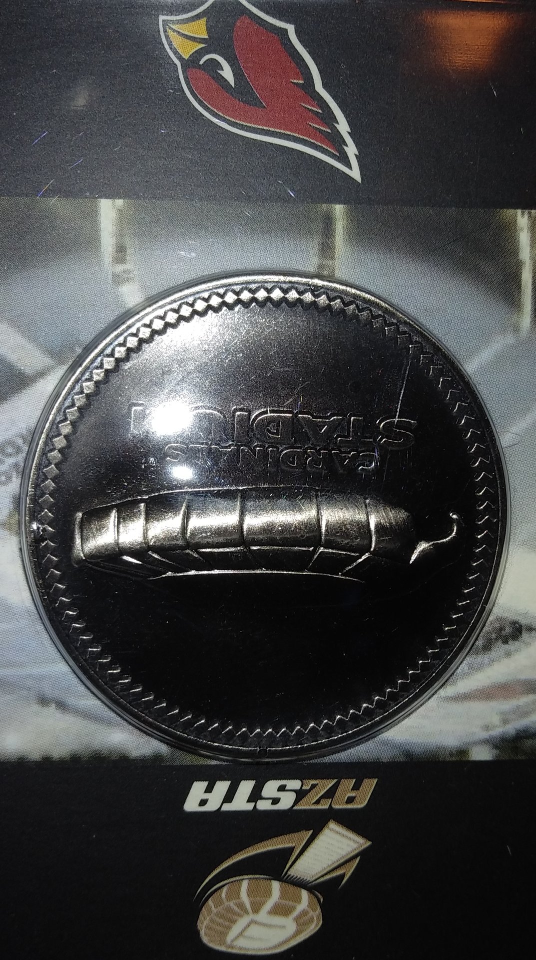 Here is one appropriate for today, a Football Stadium Coin I received when I attended the Fiesta Bowl Oklahoma vs Boise State.