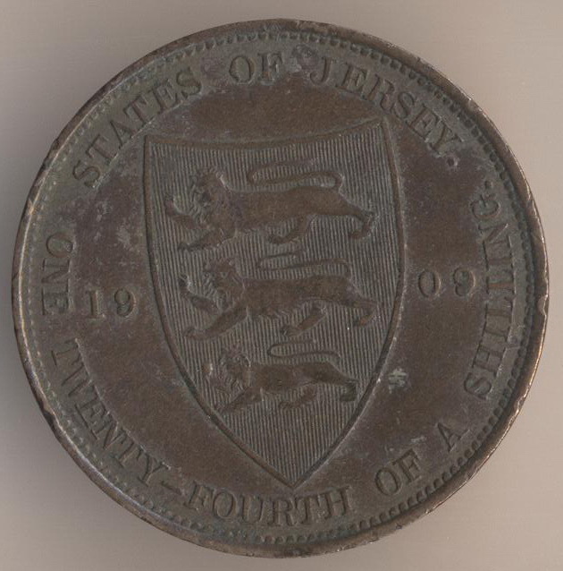 I think this is a neat coin ... The Bailiwick of Jersey (one inhabited island) and the Bailiwick of Guernsey (seven inhabited islands) are in the Channel Islands archipelago between southern England and northern France, remants of the Duchy of Normandy. They are British Crown Dependencies, hence the portrait of George VI. Enjoy! Best Regards, George Jersey 1947 1/12th Shilling MS64RB PCGS