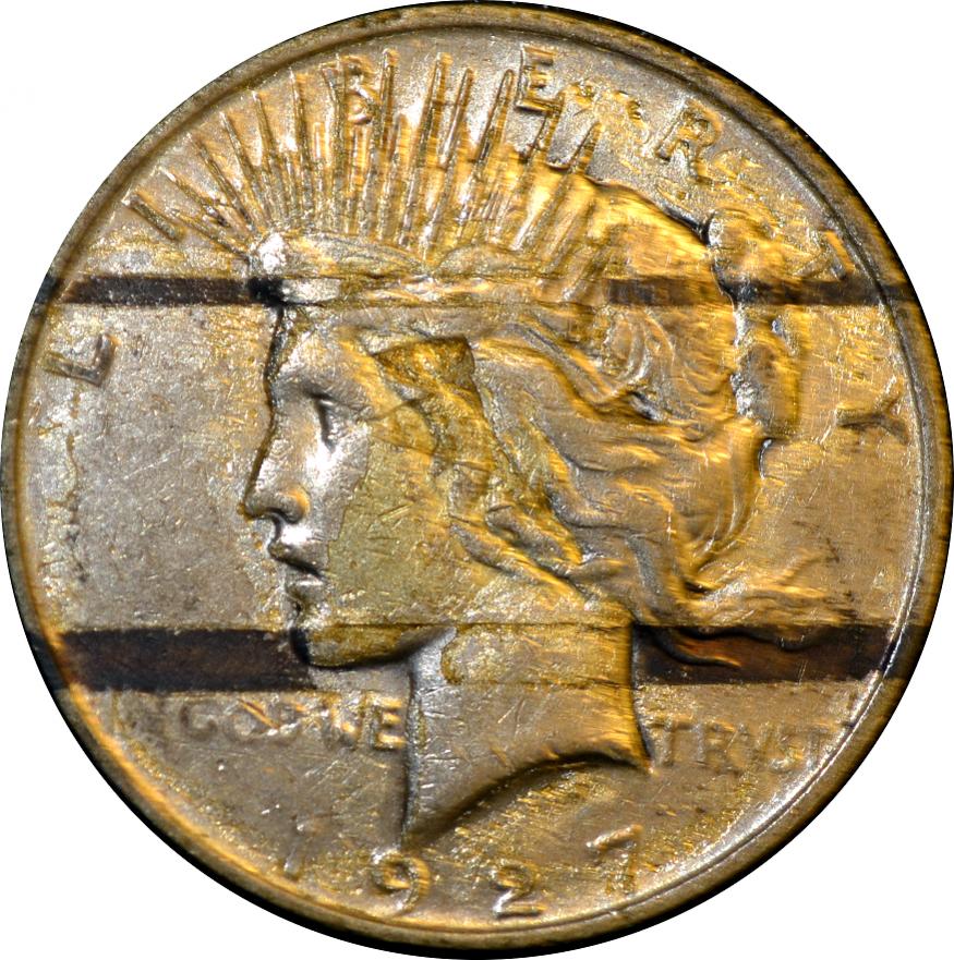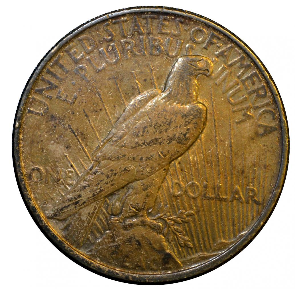 This Peace dollar was scotch taped inside a birthday card for a long time. I suppose that counts as damage.