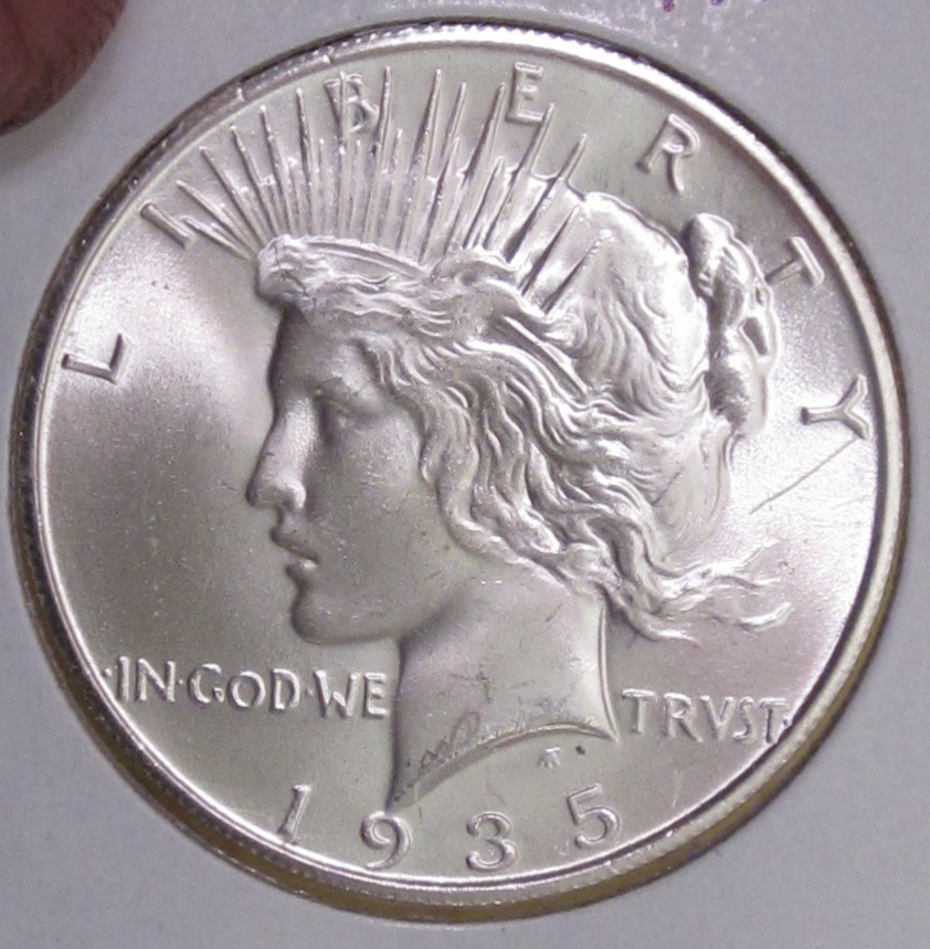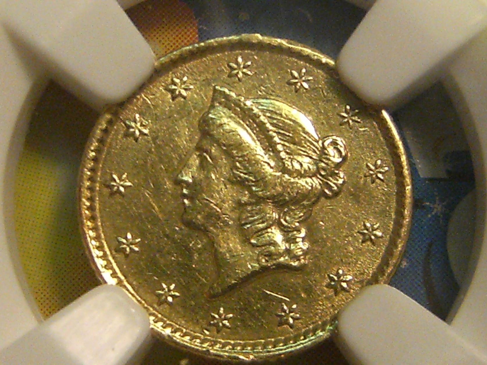 Thanks, not much of a distraction IMO. What the grading services call "damaged" for grading purposes usually makes sense, but I have seen a fair number of graded coins that were damaged and were either not caught or considered to be "bad enough". I once picked up an 1874 $20 Liberty that looked MS but had an "Y" right on the cheek of liberty. NGC graded it MS60. My guess is they did not see it as grafitti or "intentional"; so it seems that TPGS' decisions may go to "intentionality", that accidental marks are accepted but if someone did something directly to mark the coin, it no grades. In the case of the half cent I posted, it looks like grafitti to me, but very old. Coin detectives are good at coming up with the original causes of these things.