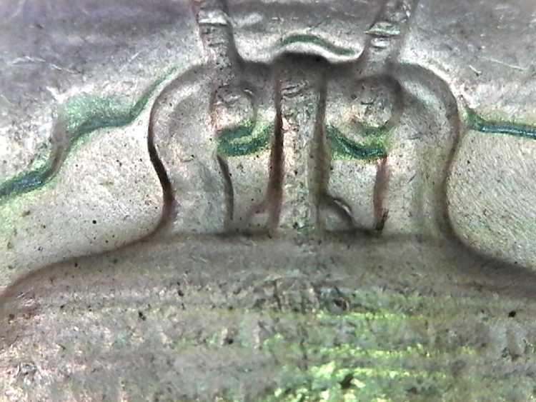 No DOUBLE dies, that is. Here's the reverse of the coin above-two totally different doubled dies, the obverse is a Class I doubled die and the reverse is a Class VI doubled die, characterized by thick, distorted lettering. This is probably the strongest obv+rev doubled dies of any US coin.