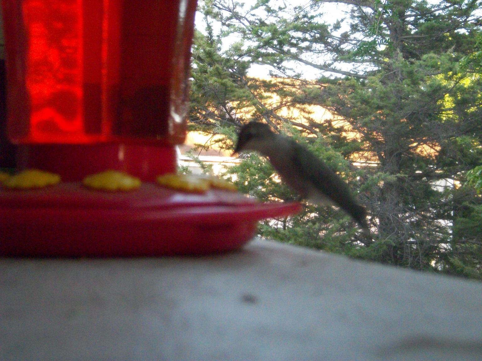 enochiam- here's the hummingbird pic my girlfriend was taking....I know off topic (live a little). his beak is way longer than appears ....must have turn our way while taking this pic. I am facinated by how fast their wings flap and can hover in 1 spot....then take off.