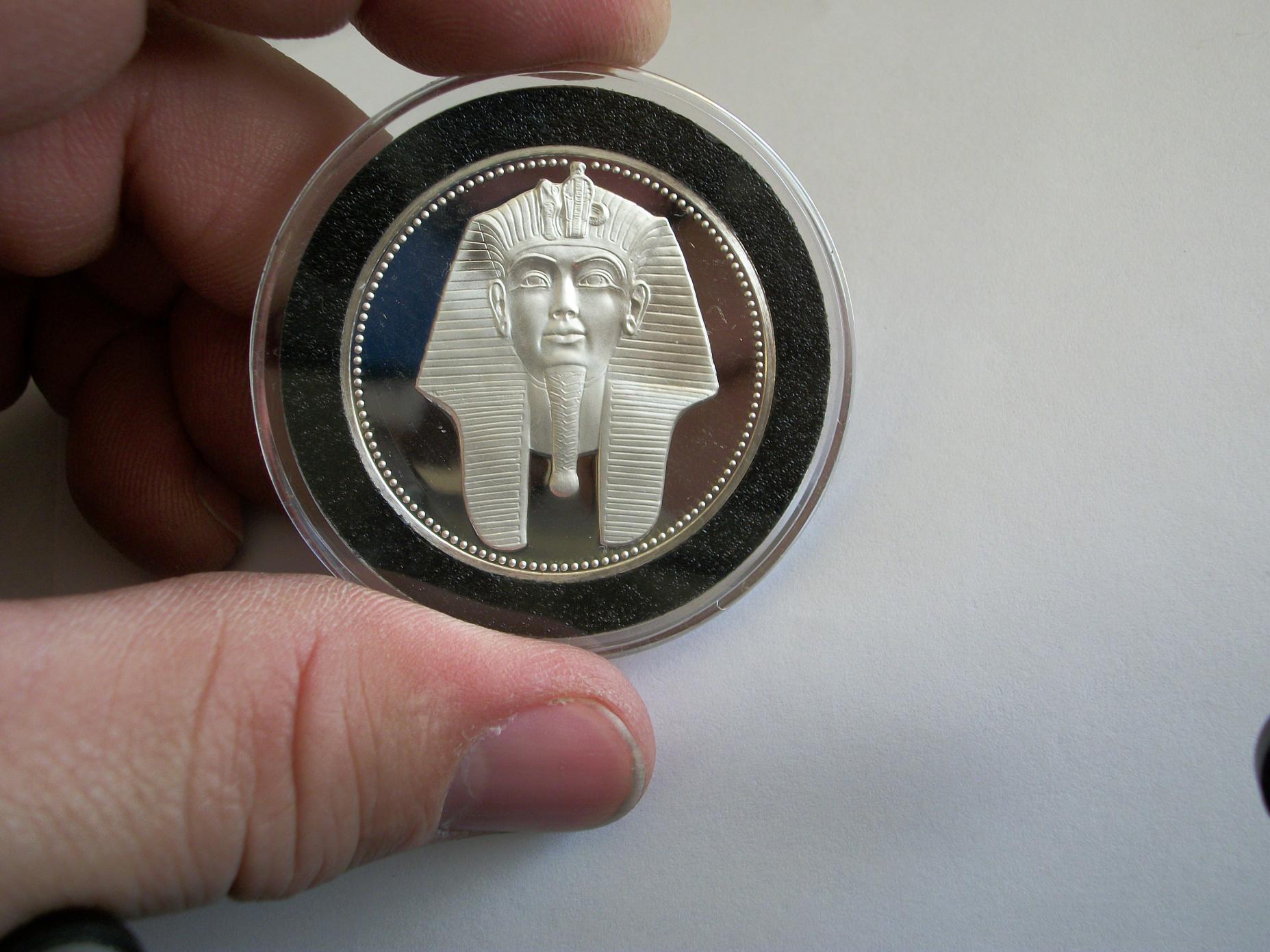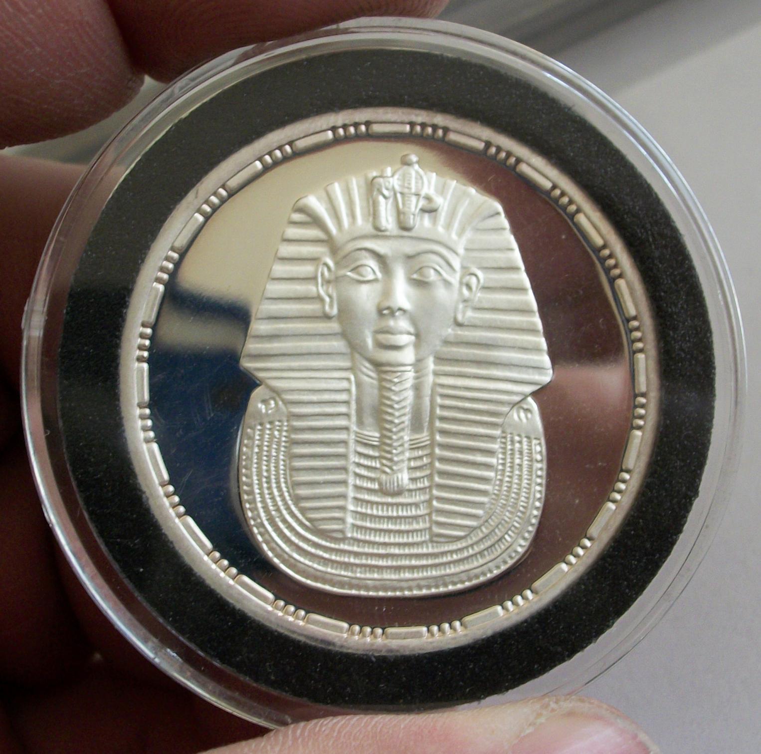 my 2 silver proof King Tut coins: 1993 King Tutankhamen KM#793 5 pounds, .999 silver, 22.50g. weight. Value-$48.00 1999 King Tutankhamen KM#900 5 pounds .975 silver, 37mm size, 17.33g weight. Value $55.00 I love these 2 coins. I see both these coins seperately going for $100.00 each for a retail price. I will never sell them I like them to much. I will get the small and large gold coins someday....way down the road lol.