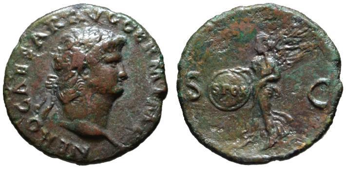 That is not a shield Nike is carrying, it is a large skillet labeled SPQR for Sallent's Poor Quacks Recipe!