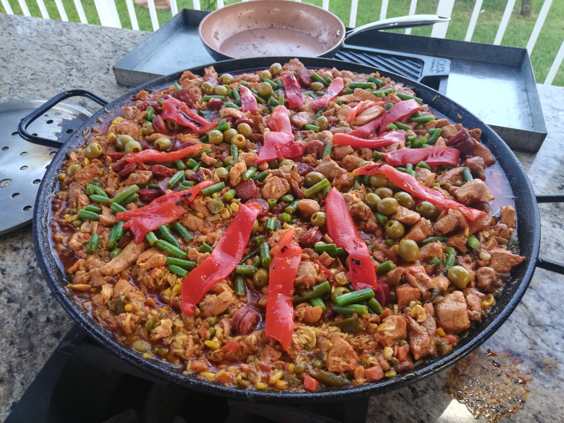 And here it is after I finished decorating the premium paella. What do you say, guys? Looks ok to you? I'll read the comments later, I've been cooking for 3 hours nonstop and now it's time for my family and I to enjoy this labor of culinary love. This is the type of paella Vitellius would love.
