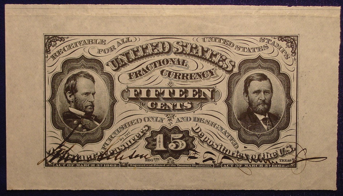 I put together an almost complete type set of fractional currency in the late 1980s. The 50 Postal Currency was the perforated edges was one of the hardest to find. I paid the most money for this group. This 15 cent note was made only as an essay. When I was in the market, I saw pieces that had been glued together, back and front, in an attempt to make a complete note. These are the so-called "wide margin" pieces. I can post any of the others, if there is an interest. Sometimes it's good to bring back a "zombie thread" or maybe it's better to do "Frankenstein" and create a new one. That's a nice Fourth Issue 15 cent note BTW, @benveniste.