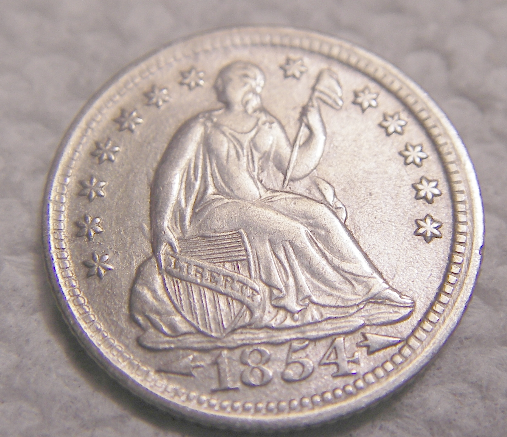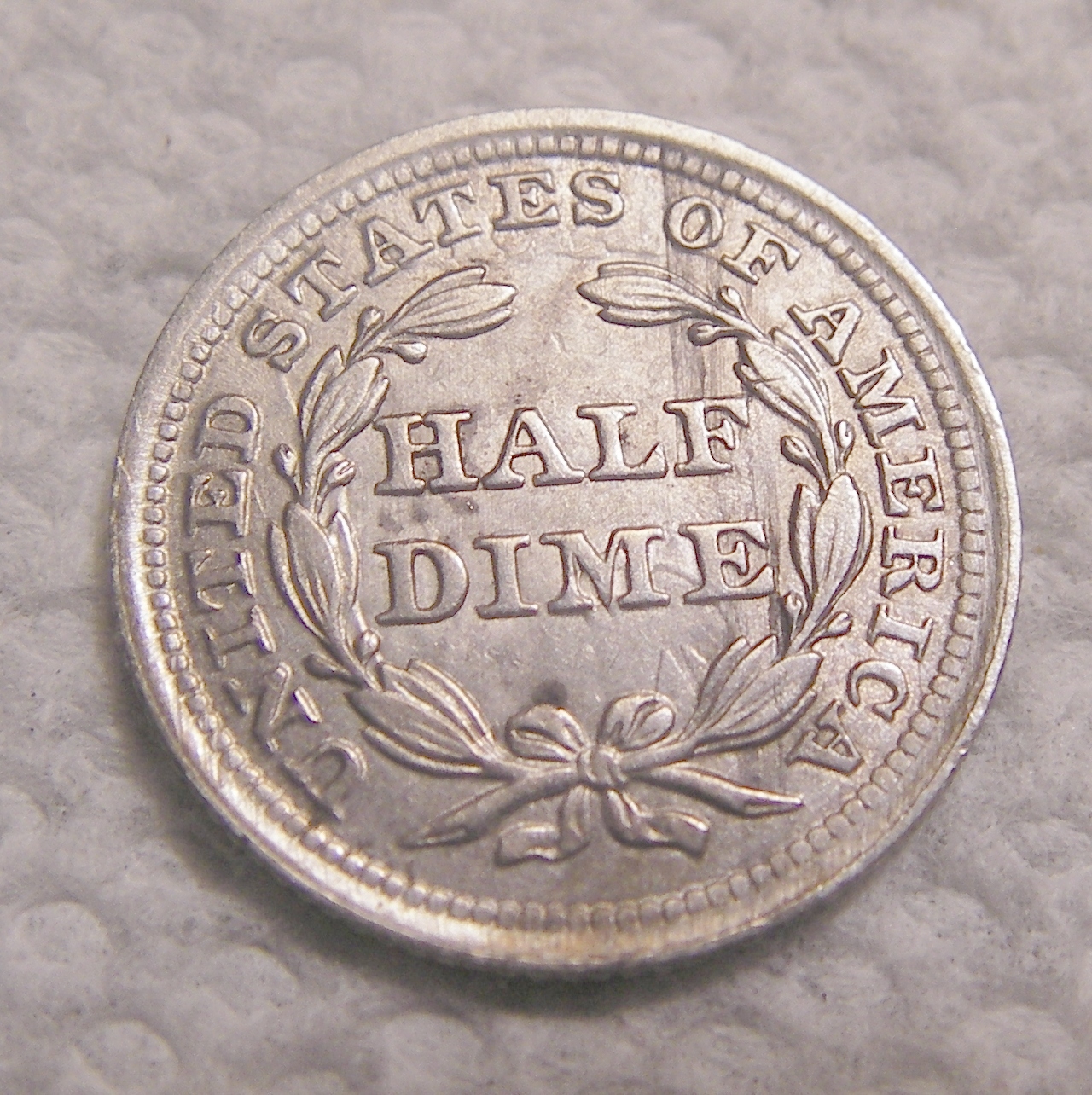 I needed one more half dime, the 1859 with hollow stars, to complete my type set of half dimes and here are the pictures of the coin which filled that hole. It was quite challenging finding one that was not a proof which has well defined stars on the left side as most half dimes of this obverse type are filled in. This one does quite well and it is the only mint state example in this type set, PCGS MS-64 with a green bean.