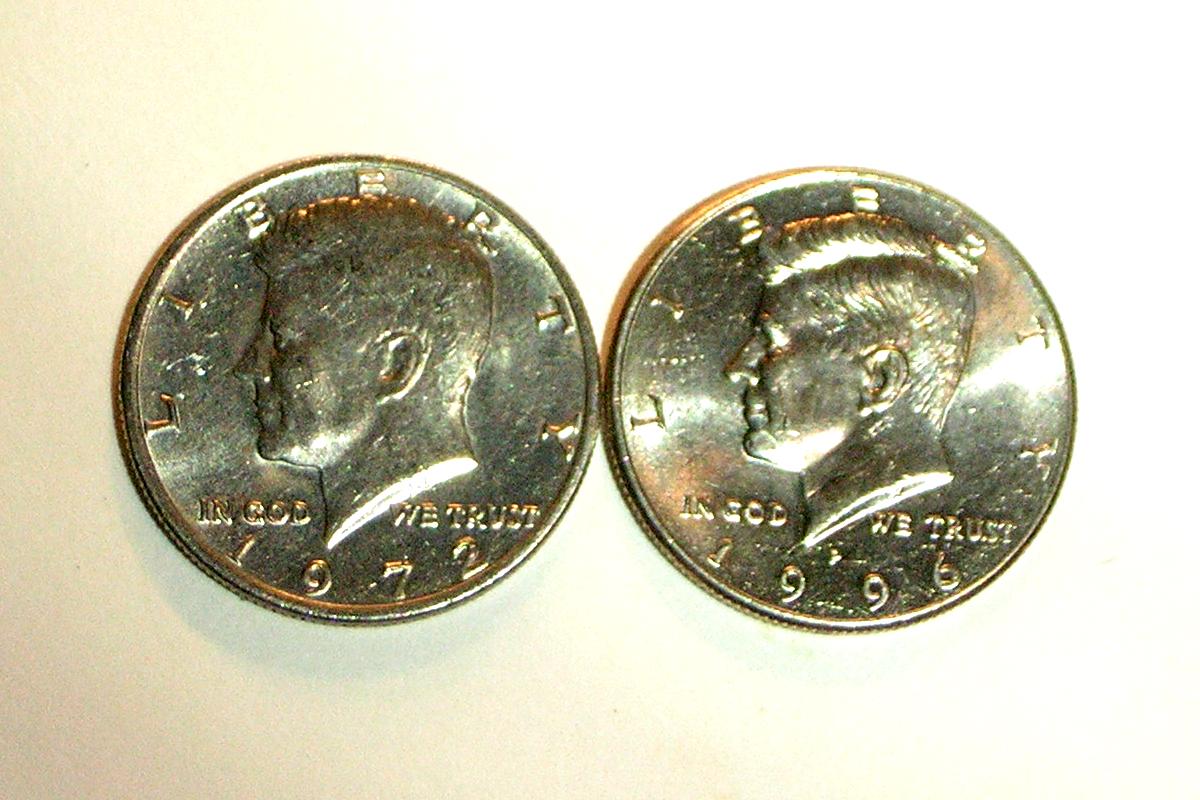 About the aesthetic effect--I like both varieties on the obverse but the reverse is hands-down superior on the original. The revision is just too flat, and that's a shame. Of course the vagaries of strike can have almost as much (or more?) effect, and one must be sure to be comparing similar strikes. Another irony, when you think about it, is that the 50c has seen so little circulation in our lifetimes that wear patterns are almost irrelevant. The Kennedy Half didn't need redesigning from that practical standpoint in the first place.