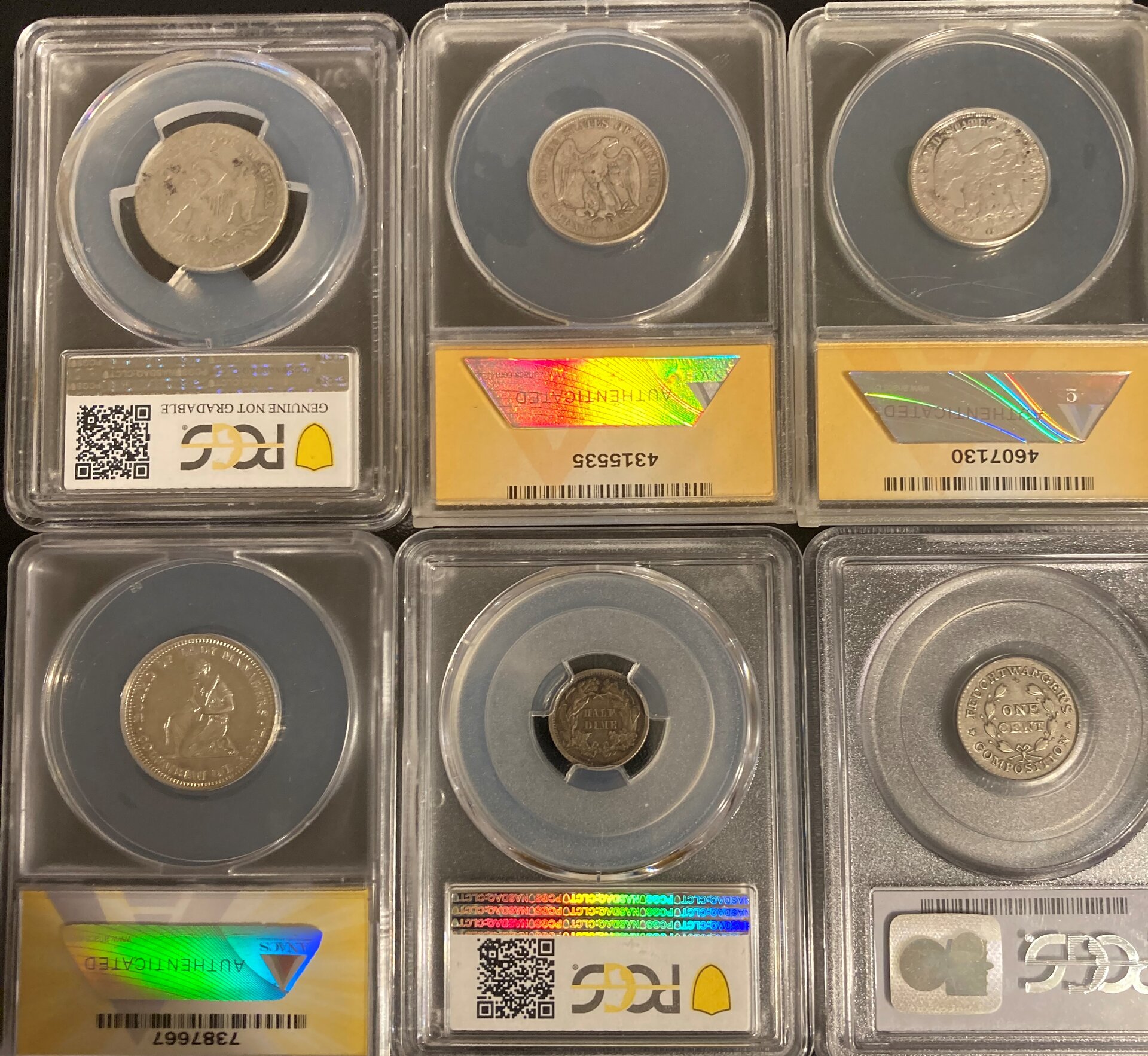 Love your coins! An 1860-S quarter in any grade is a coin to be proud of, as is the Feuchtwanger 3C. Maybe try that one at ANACS if you want it in a slab?