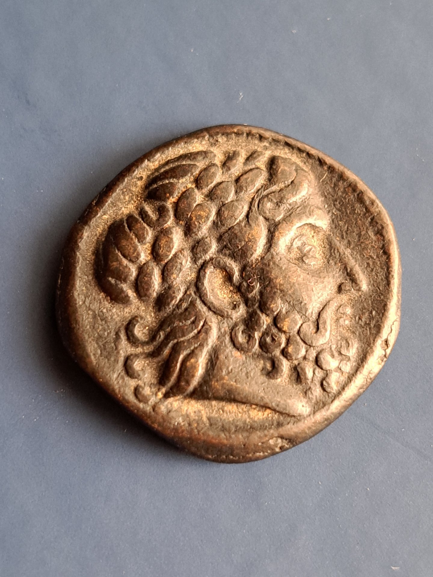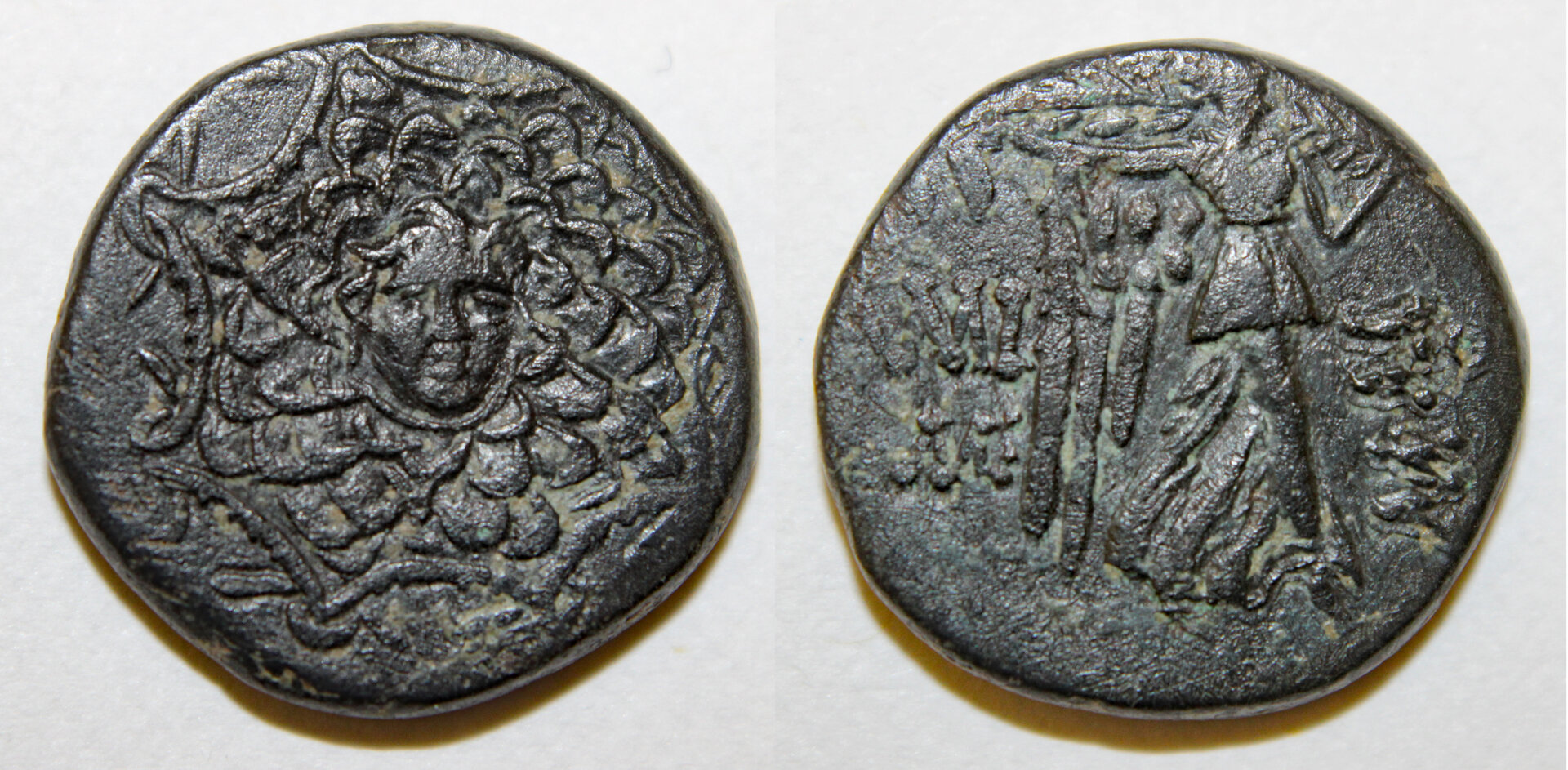 Hi All, Here's my latest. CLEOPATRA VII PHILOPATOR THEA NEOTERA (51-31/30 BCE) EGYPT, ALEXANDRIA, Year 20 (31 Aug 33 - 30 Aug 32 BCE) Ar Stater (Tetradrachm) Size: 23x2 4mm Weight: 13.85 Die Axis: 11:00 Broucheion Collection P-2023-05-06.001 OBV: Ptolemy I head facing right, wearing diadem. Scaly aegis tied by snakes not visible. Dotted border. REV: Eagle on thunderbolt facing left, wings closed with palm branch over right shoulder. To left: [ΠΤΟΛΕΜAIOY], in left field: LK above headress of Isis; to right: BACI/\E[ΩC], in right field: ΠΑ. Dotted border. Refs: Svoronos-1834, pl lxi, 18 [17 listed]; SNG Copenhagen-416; Sear-7953 var: year 22. Provenance: Bought From eBay 05-May-2023 for $82.56 (= winning bid $71 + %5 Shipping + $6.56 Tax). Note: Seller's INCORRECT DESCRIPTION: "80-58 BC ~ AR TETRADRACHM ~ PTOLEMY XII OF EGYPT ~ 1ST REIGN ~ GREEK" Final thoughts: I suppose the dark spots will clean up with some lemon juice. It pays to be able to tell Ptolemy XII from his daughter Cleopatra. - Broucheion