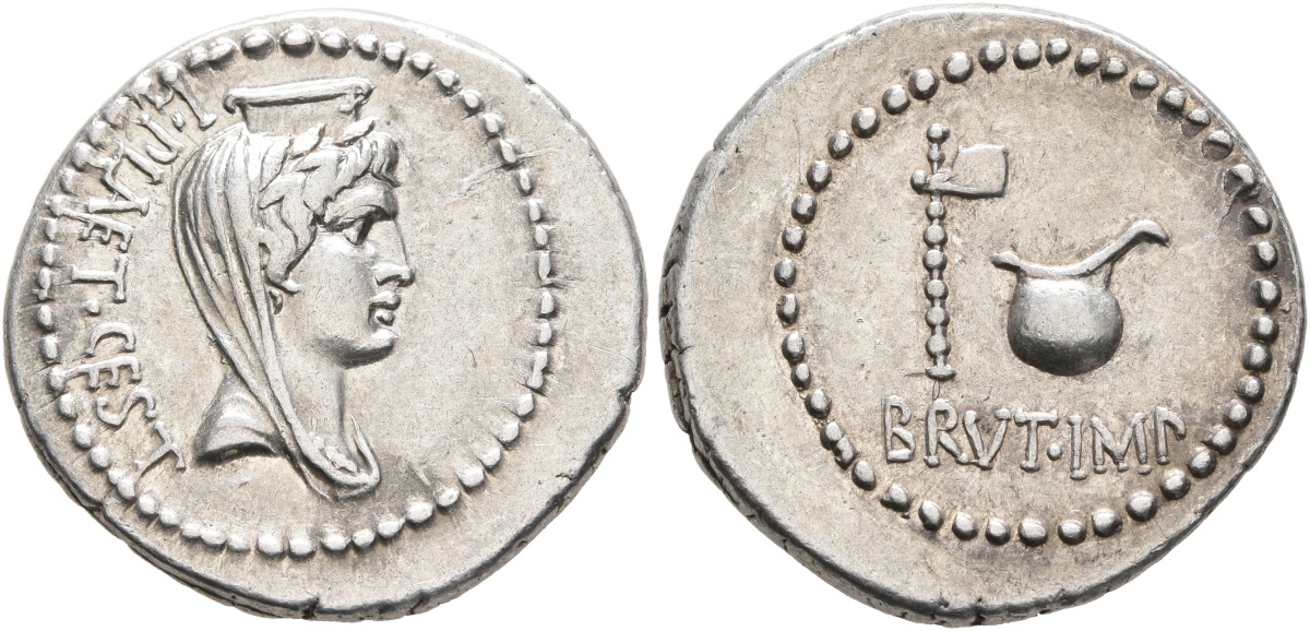 And now for the real reason for going online. I'm considering doing an educational display at one of the major coin shows on "Coins of the Roman Imperatorial Era". This was the time of the dictators and collapse of the Republic. To this end, I was hoping to find a decent denarius of Brutus, the assassin of Julius. Finally snagged one at the Leu auction yesterday! Brutus, 43-42 BC. Denarius (Silver, 19 mm, 3.79 g, 1 h), L. Plaetorius Cestianus, moneyer. Military mint traveling with Brutus and Cassius in western Asia Minor or northern Greece, late summer-autumn 42. Of course, the ultimate of this person/ Imperator is the ID-MAR denarius, but this is beyond my price range at the moment!