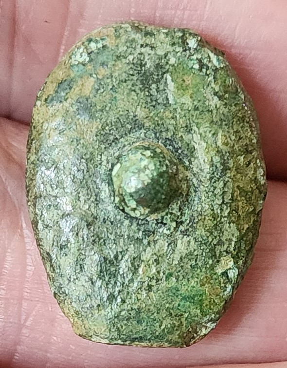 After several failed attempts, I won a one dot club aes grave. It is not the smallest cast coin in my collection, but it is close. Greek Italy. Uncertain Umbria or Etruria. AE Cast Uncia, c. 3rd century BC. Obv. Club, Rev. Dot. TV 173; Uncertain Umbria, Almond shaped Haeb. pl. 81,42.43. 11.49 grams 23.0 mm. R. Rare. Attractive earthy green patina. About EF. For size comparison shown next to a Mars / Mars Semis.
