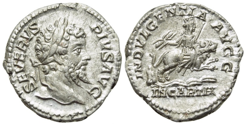 Roman Empire Silver Denarius of Septimius Severus (minted in Rome in either 200 or 201):