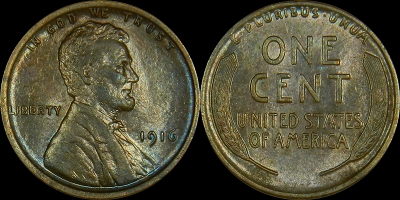 1909 VDB Lincoln (PCGS MS65RB). One of the more eye appealing biz strike VDB's I've seen. Green, pink, and luster is a great combination.