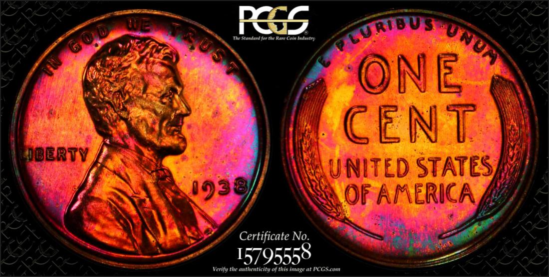 I hardly ever buy RD copper, but this was just stunning! There are only 93 1951 PR67RDs in existence and I bet this is one of the nicest looking examples. The little bit of color on the obverse and reverse sold me on this. The obverse coloration of subtle olive green and fiery orange/red is just stunning and I love the deeply mirrored reverse. This particular example is the top listed coin for grade and visual appeal on the CoinFacts website for this date.